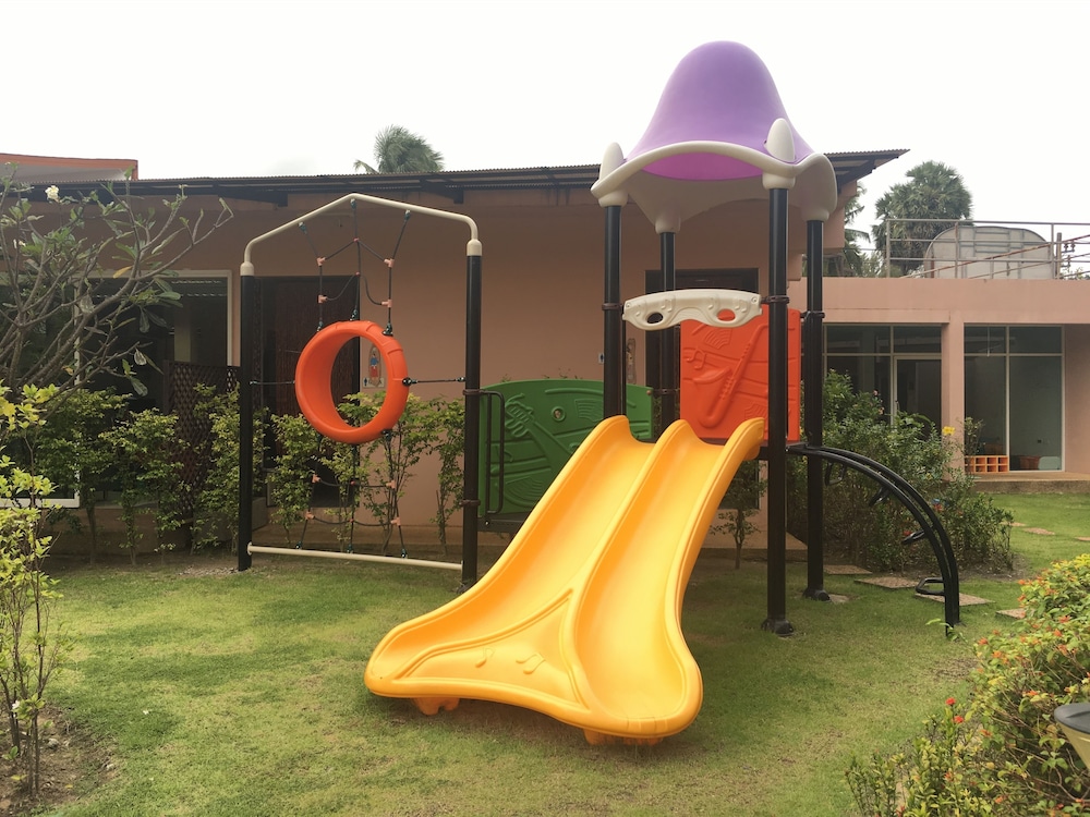 Small kids play area outside in the garden, nice kids play room inside as well (but air con was temporarily broken) with various toys. Small gym as well, with good air con.
