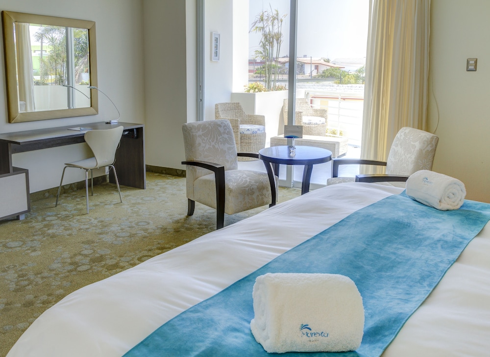 Recreational Amenities: Enjoy the outdoor pool and fitness center during your stay at Hotel Maresta Lodge. Dining Experience: Indulge in a meal at Mares, complete with a bar/lounge, or opt for room service. Convenient Location: Centrally located in Nuevo Chimbote, with key attractions just a few minutes away. Book your stay at Hotel Maresta Lodge - Hotel Asociado Casa Andina for a memorable experience.