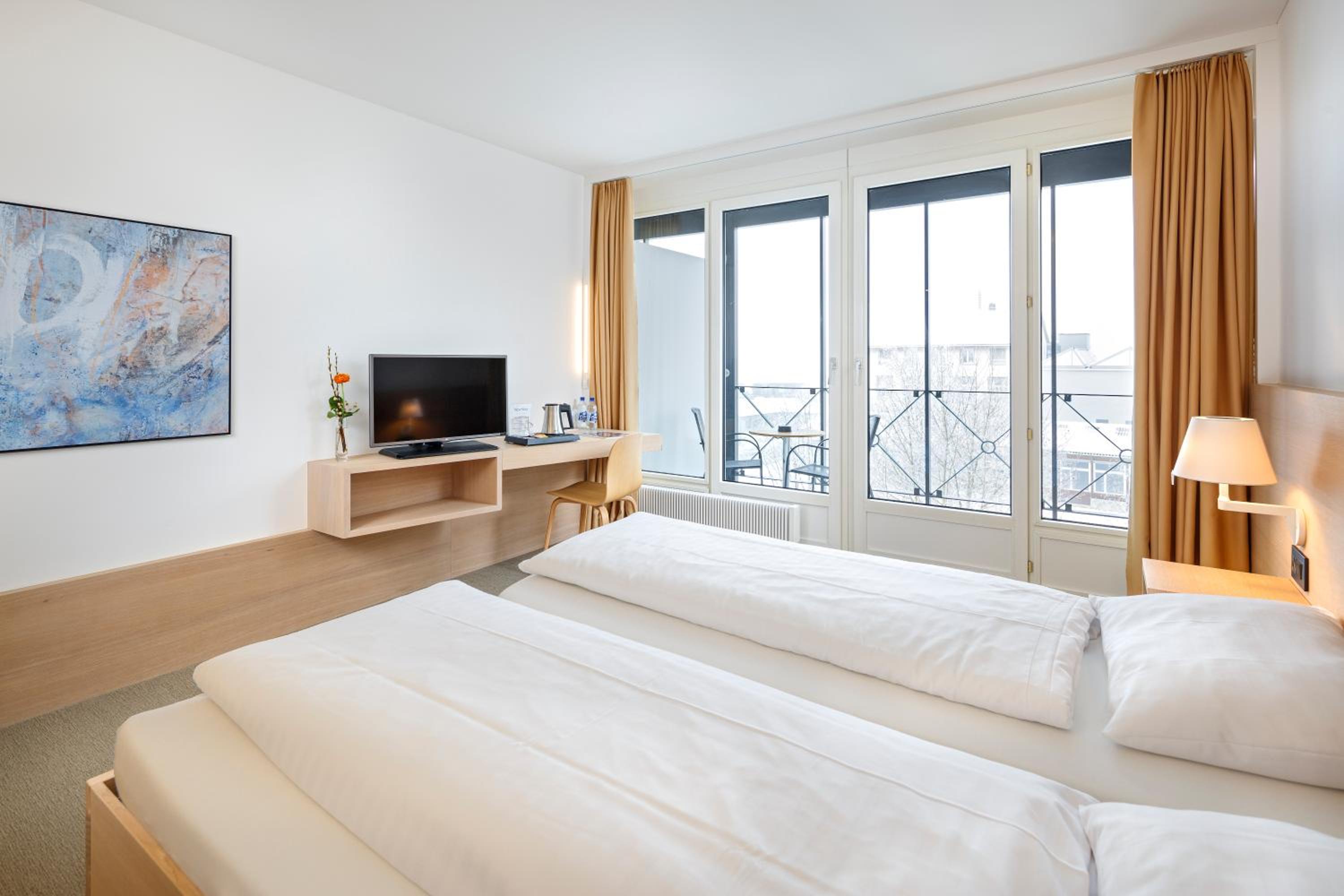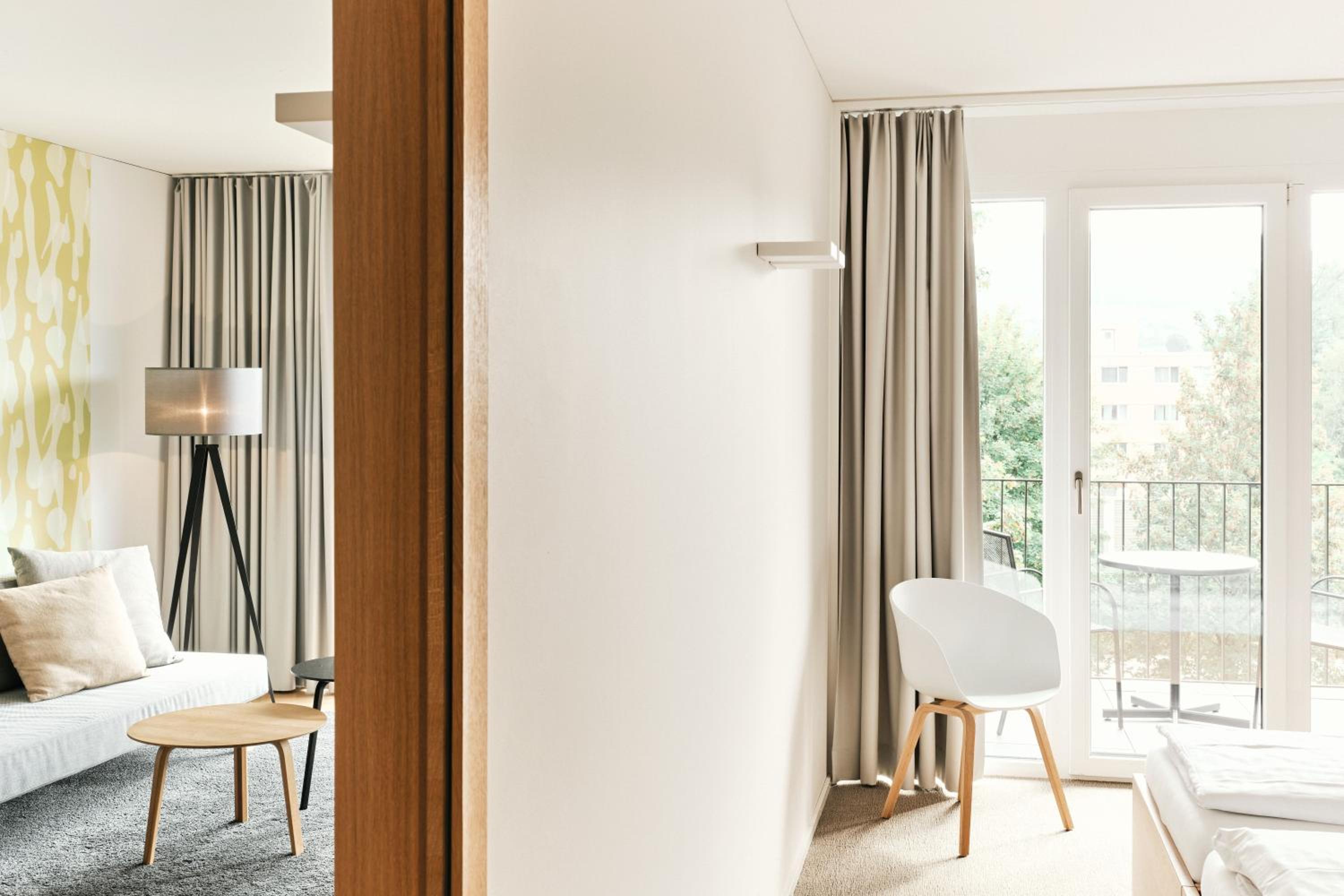Wir sind etwas verwöhnt und haben uns wohlgefühlt :-). Details: Parkplatz im Preis enthalten, Ladestation (eCarUp), angenehmes modernes helles luftiges Zimmer mit ganzseitiger raumhoher Fensterfront und grossem Balkon (Blick auf Möbelhaus nebenan, aber auch auf die Hügellandschaft). Vielfältiges Frühstücksbuffet und schön gestaltete Räume.