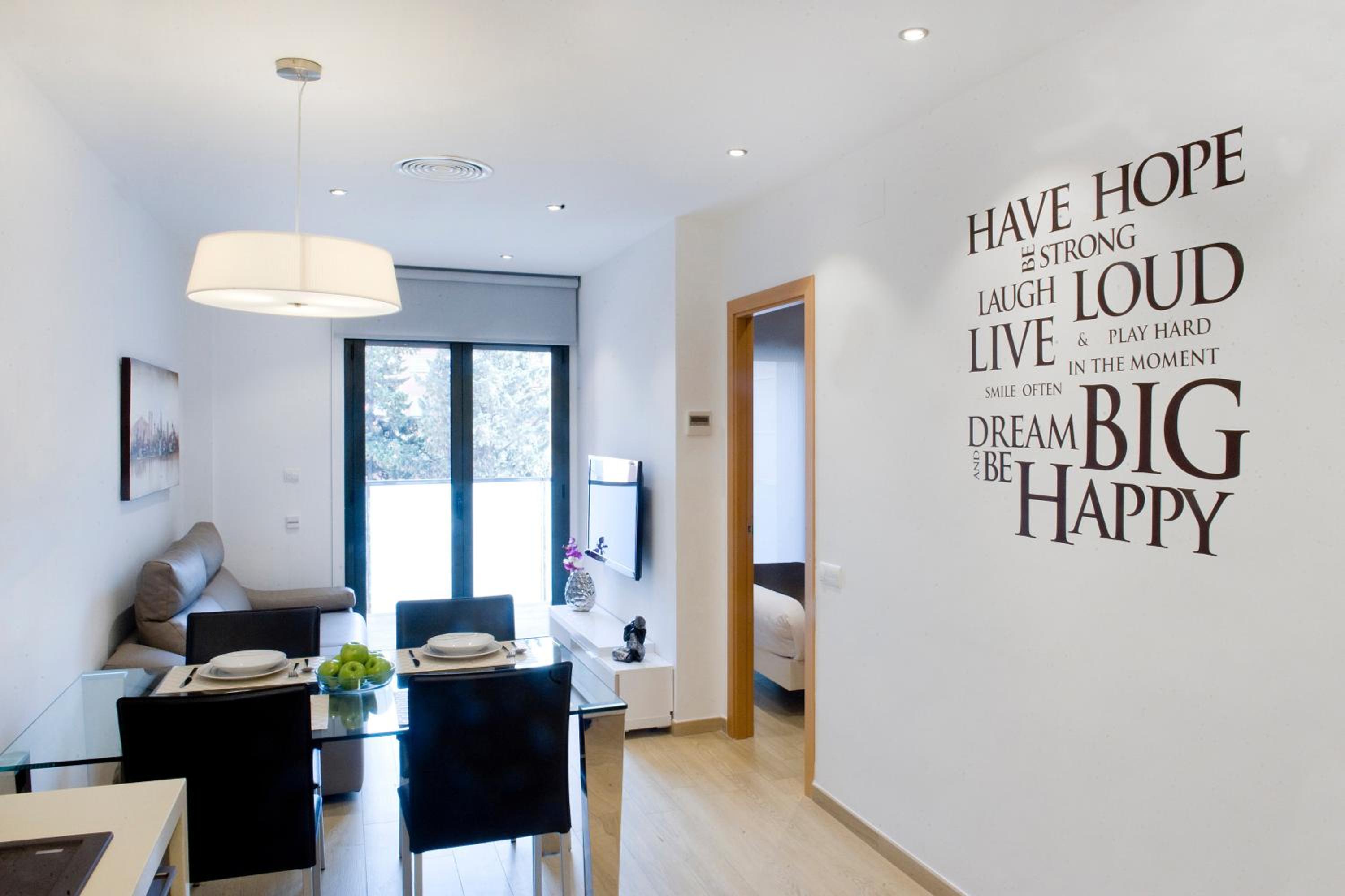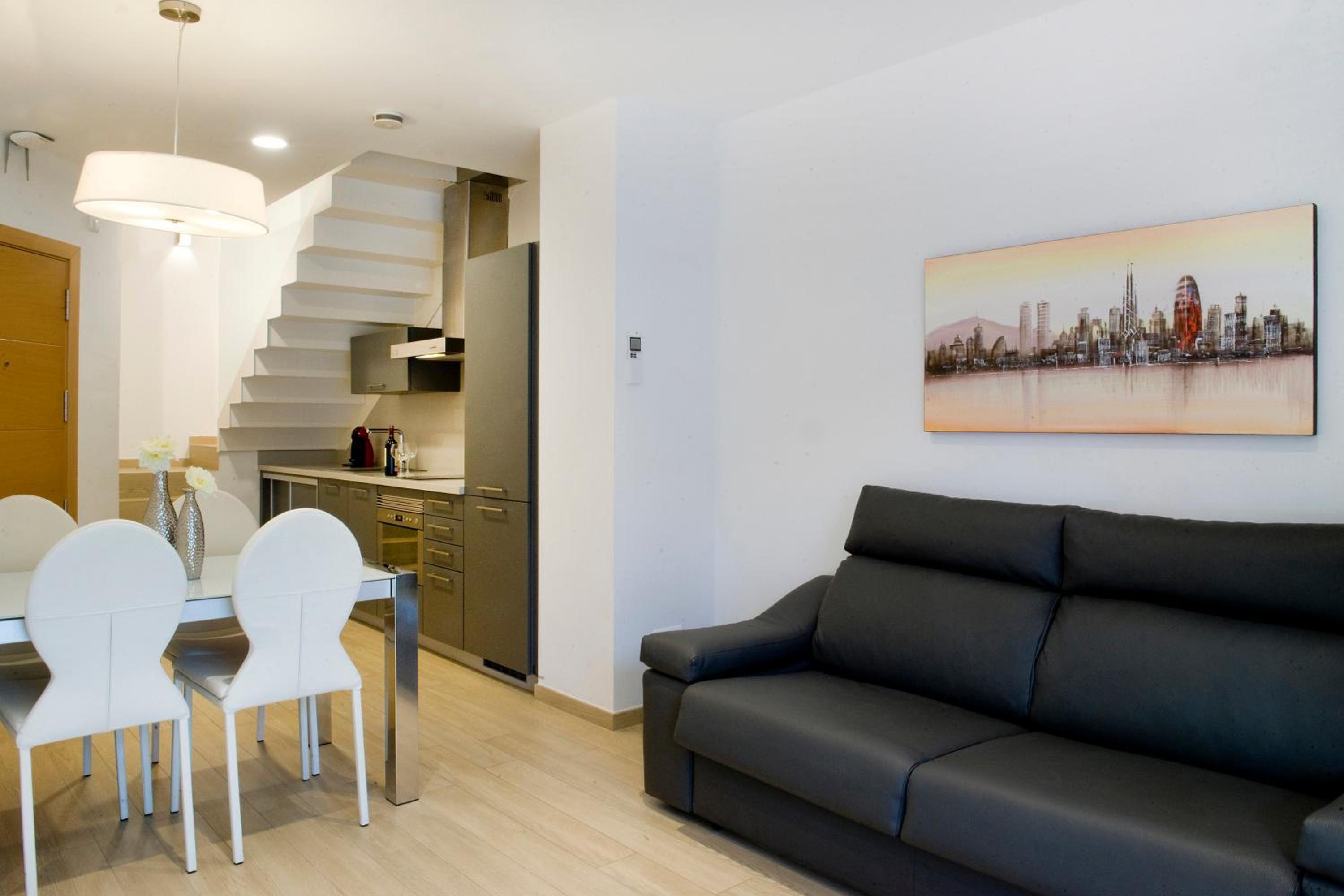 Chic and Convenient Living: Experience modern and air-conditioned apartments with free Wi-Fi, just a short walk from Plaza Espanya. Each apartment features a sleek living-dining area, a fully equipped kitchen, and a cozy sofa bed for relaxation.