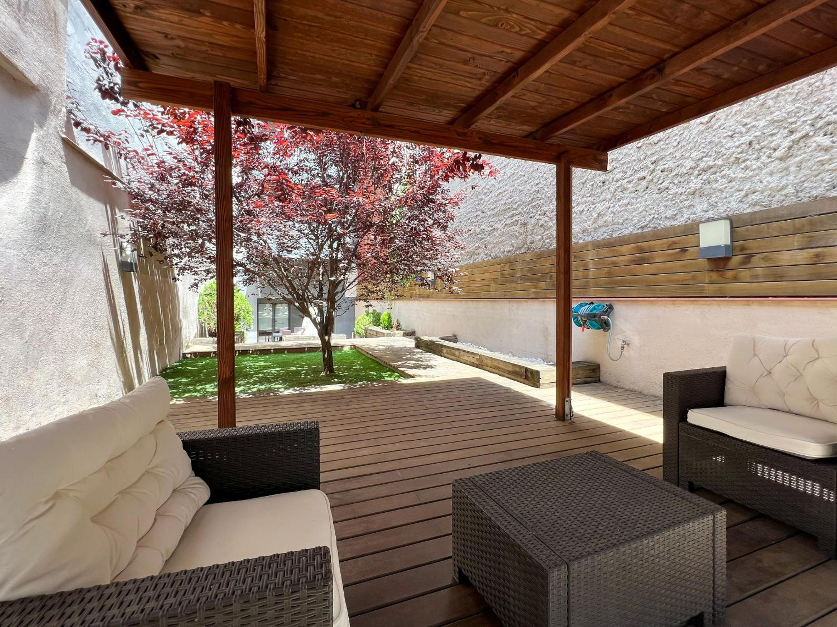 Apartment is located near Montjuic, not on a main street, but 5 minutes to the beaufiful Font Magica de Montjuic. Very calm and nice place with private garden. I was there in January and even then had the wonderful possibility to drink my morning coffee or have some evening tapas outside, in a warm Barcelona's sun.