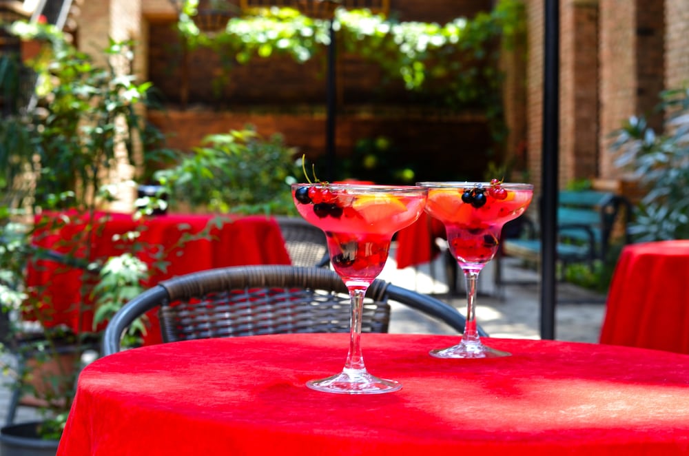 The outdoor courtyard was a pleasant area, with tables and chairs.