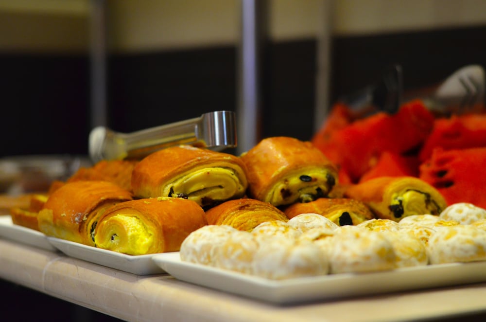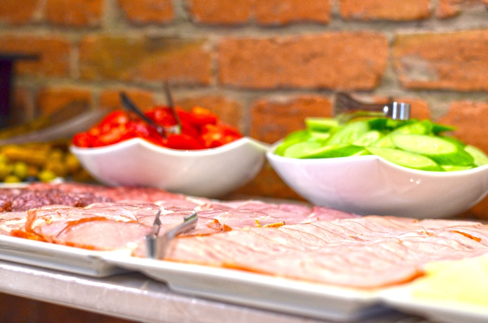 Breakfast consisted of a small buffet of boiled eggs, some fruit, yogurt, cold cuts, cheese, bread/toast. The breakfast area was small and on one morning several guests had to wait to be able to get a table.