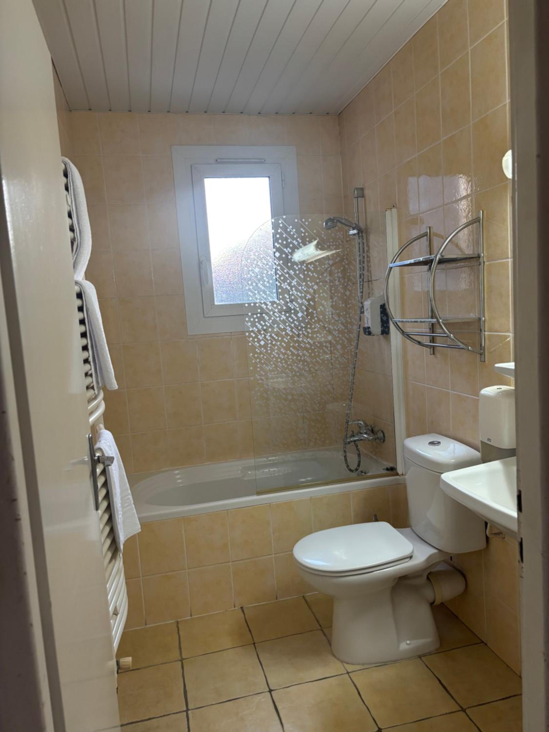 Overnight stop on way to ski. Stayed in a triple room which was a good size with a large en suite bathroom. Beds comfortable with nice linen. The auberge is not fancy but has a nice old fashioned feel to it. Breakfast was pretty good, better than expected although croissants could have been bigger! We chose the hotel primarily because it was a short walk up to the lovely old city of Conflans where we had a great meal at O Besoin d'Air. Would stay there again.