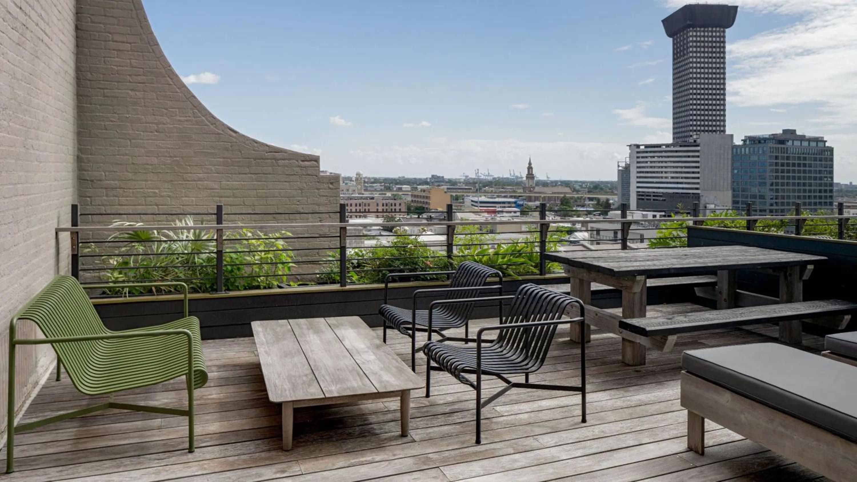 Ace Hotel New Orleans features a stunning rooftop bar and an award-winning restaurant, offering guests a memorable dining experience with panoramic views of the city.