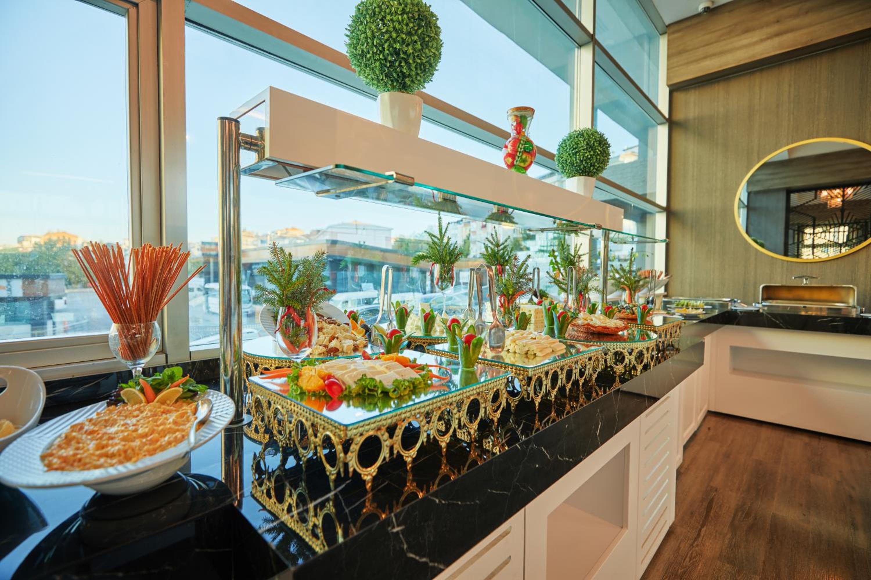 Während der Fastenzeit wurde zwar Frühstück angeboten, jedoch war alles abgedeckt (mit Folie). Wir mussten sogar selbst nachsehen, ob der Tee gekocht war oder nicht. Es gab zwar Schilder für Getränke, jedoch standen keine Behälter dort. Tatsächlich wurden weder Wasser noch Saft am Buffet angeboten. (Auf die Nachfrage hieß es, wir müssten extra dafür zahlen) Der Mitarbeiter schaute uns zudem eher intolerant an, anstatt sich um die Situation zu kümmern und das, obwohl wir aufgrund eines Verlustes auf der Durchreise waren.