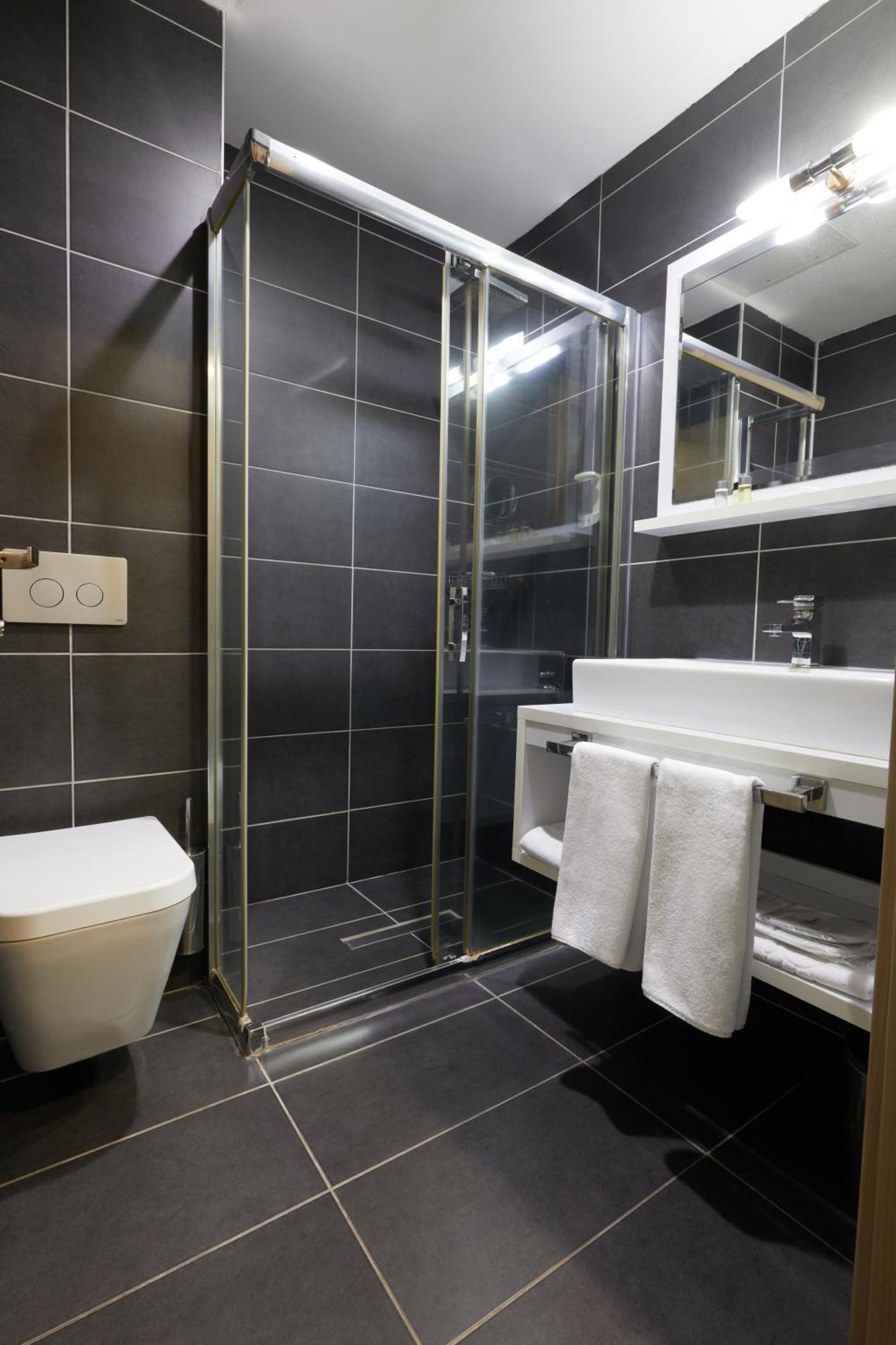Banyoda tadilat gerekiyor. Aydınlatma paslı . Kapılar eskimiş