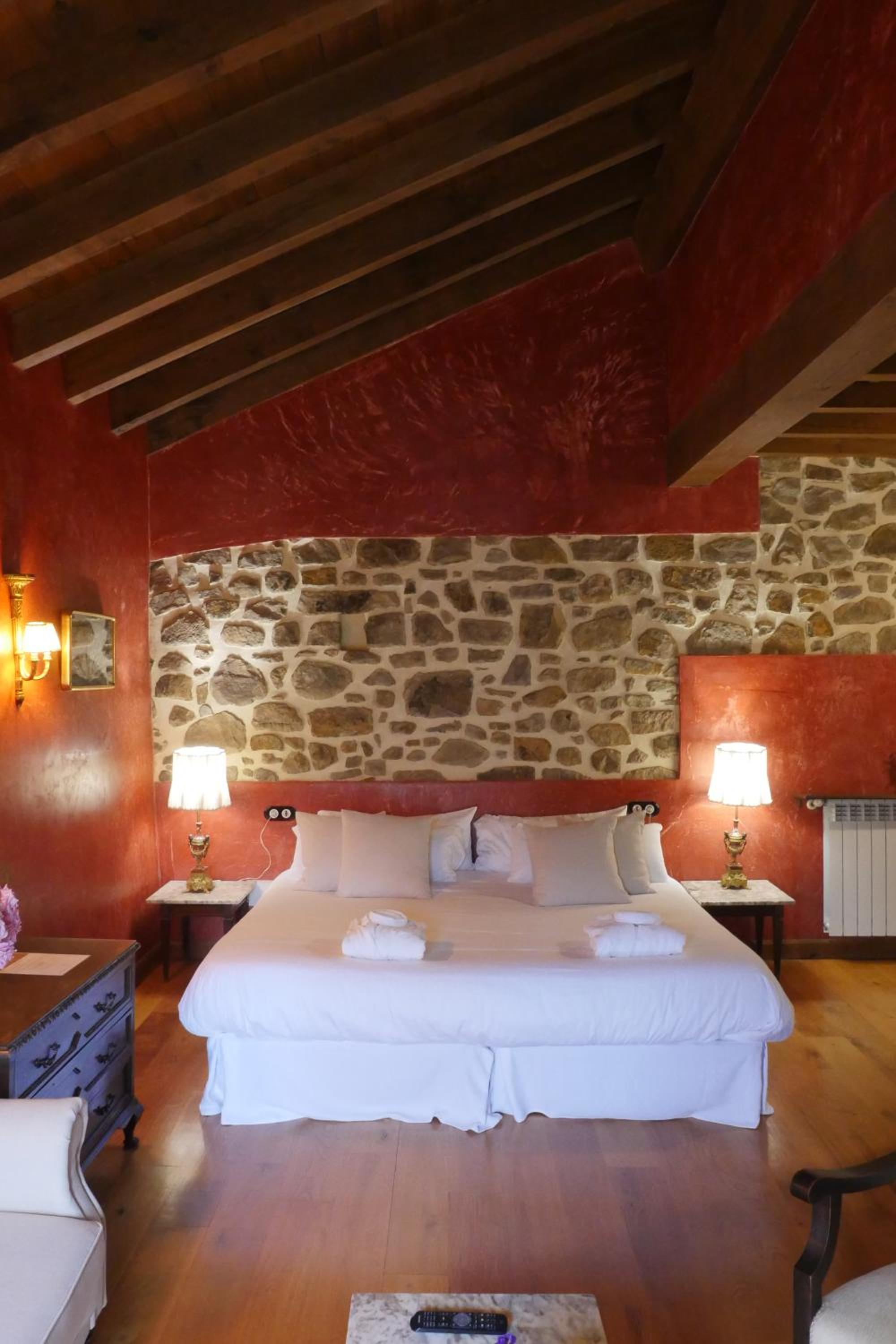 Reservamos la suite, que es como tener un mini palacio para ti, una auténtica maravilla. Vigas, piedra vista, estucado rojo, decoración de época… precioso.