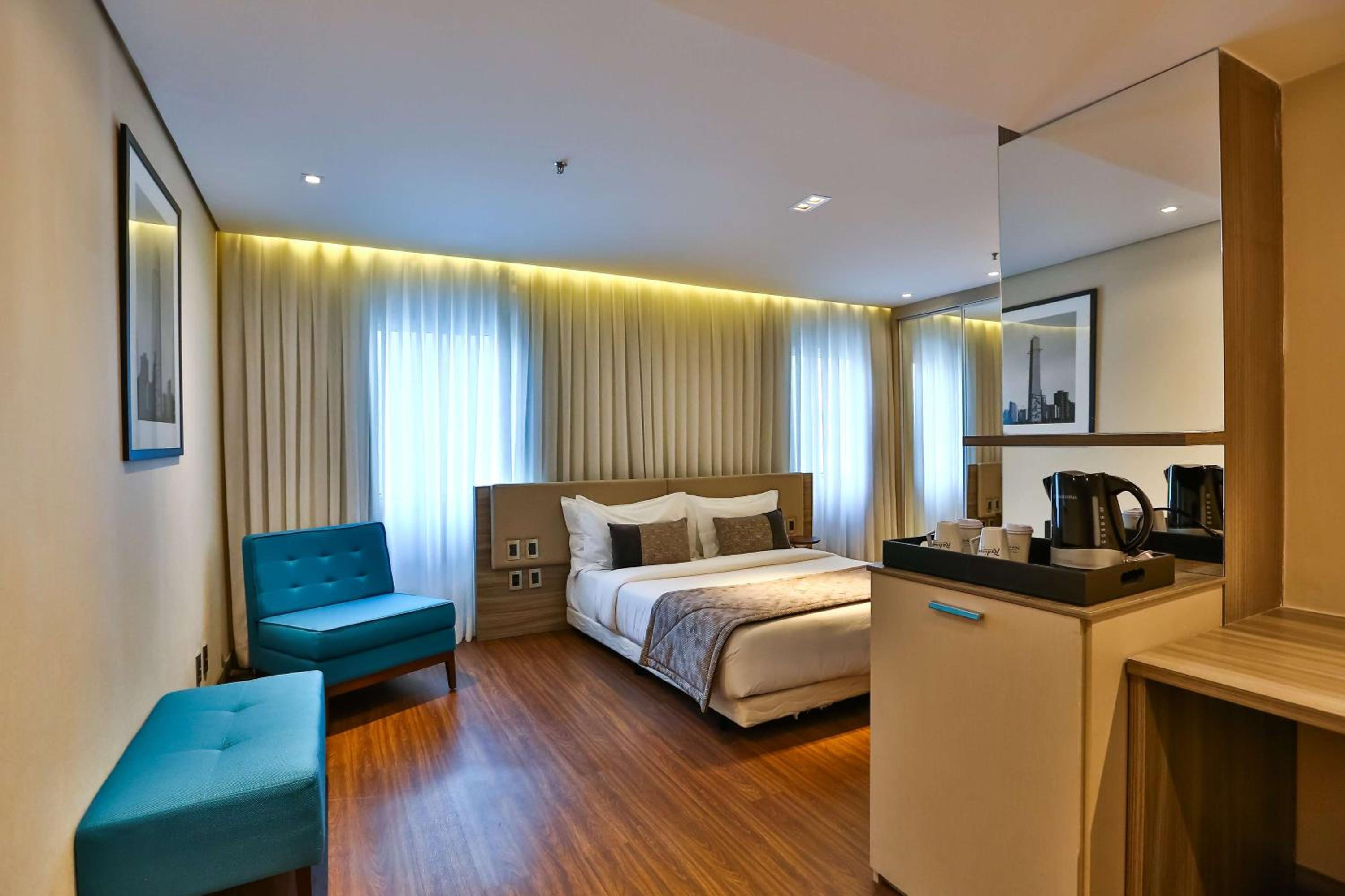 Experience spacious and modern rooms with stunning city views, equipped with all the amenities you need for a comfortable stay at Radisson Vila Olímpia. From air conditioning to free WiFi, we've got you covered.
