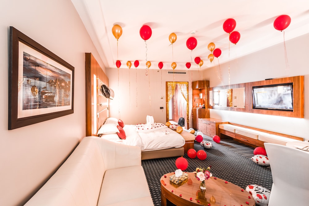 Relax in one of the 250 stylish guestrooms with premium bedding, free minibar items, and private balconies.