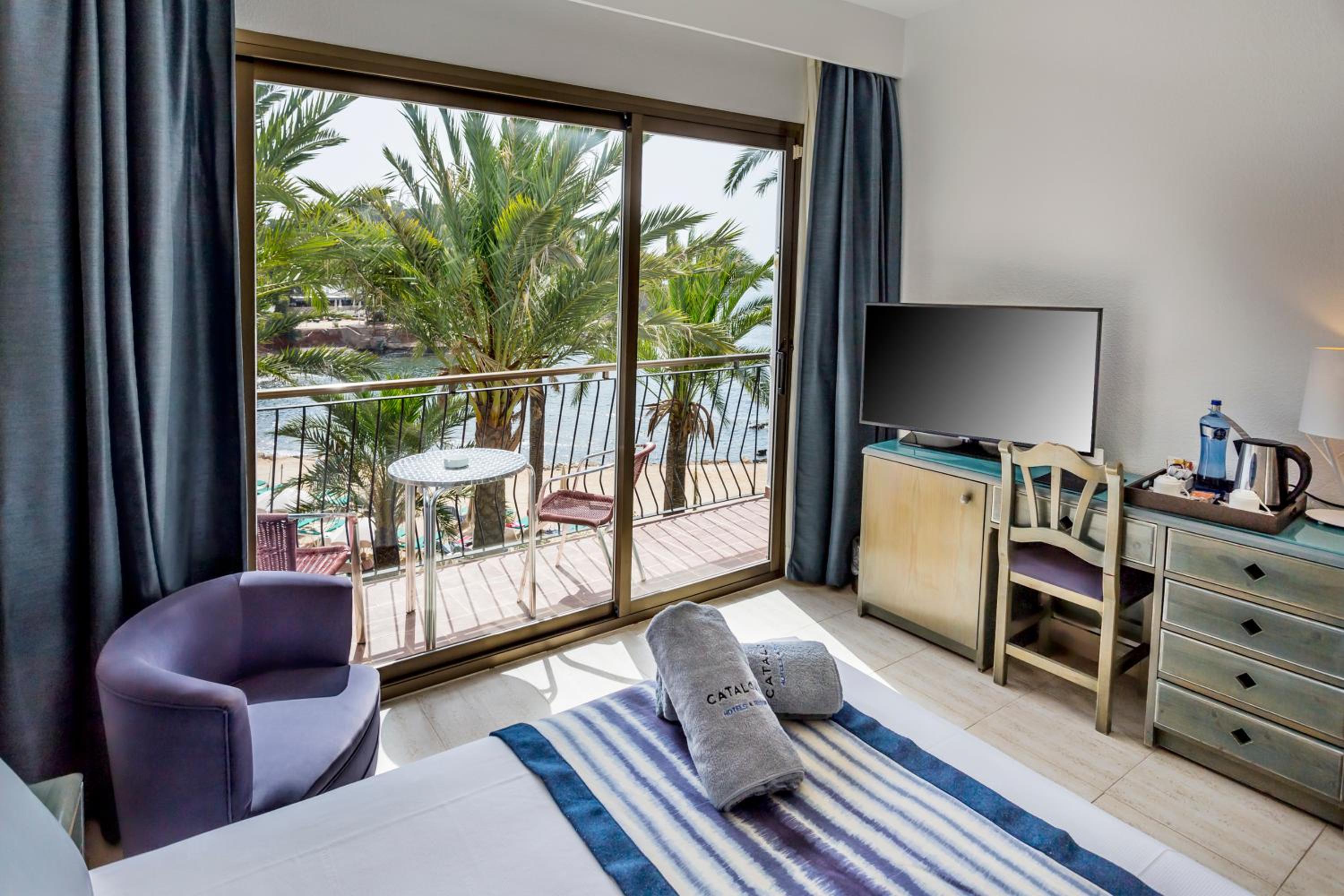 Elegant Accommodations: The air-conditioned and spacious rooms at Catalonia Ses Estaques feature satellite TV, a minibar, and a safe, along with a private bathroom. Free WiFi is available throughout the property for your convenience.
