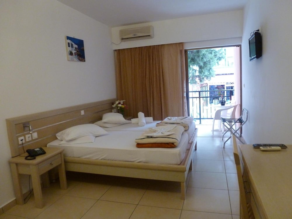 Mahtava allasalue. Aivan rannalla. Oma ranta, ilmaiset rantatuolit. Todella kauniit näkymät. Hyvä sijainti, paljon hyviä ruokapaikkoja lähellä. Kannattaa ehdottomasti käydä vanhan herttaisen rouvan Kokkinidis ravintolassa (hän jo eläkkeellä, tytär pyörittää ravintolaa) ❤️ Myös hotellin ravintola hyvä.