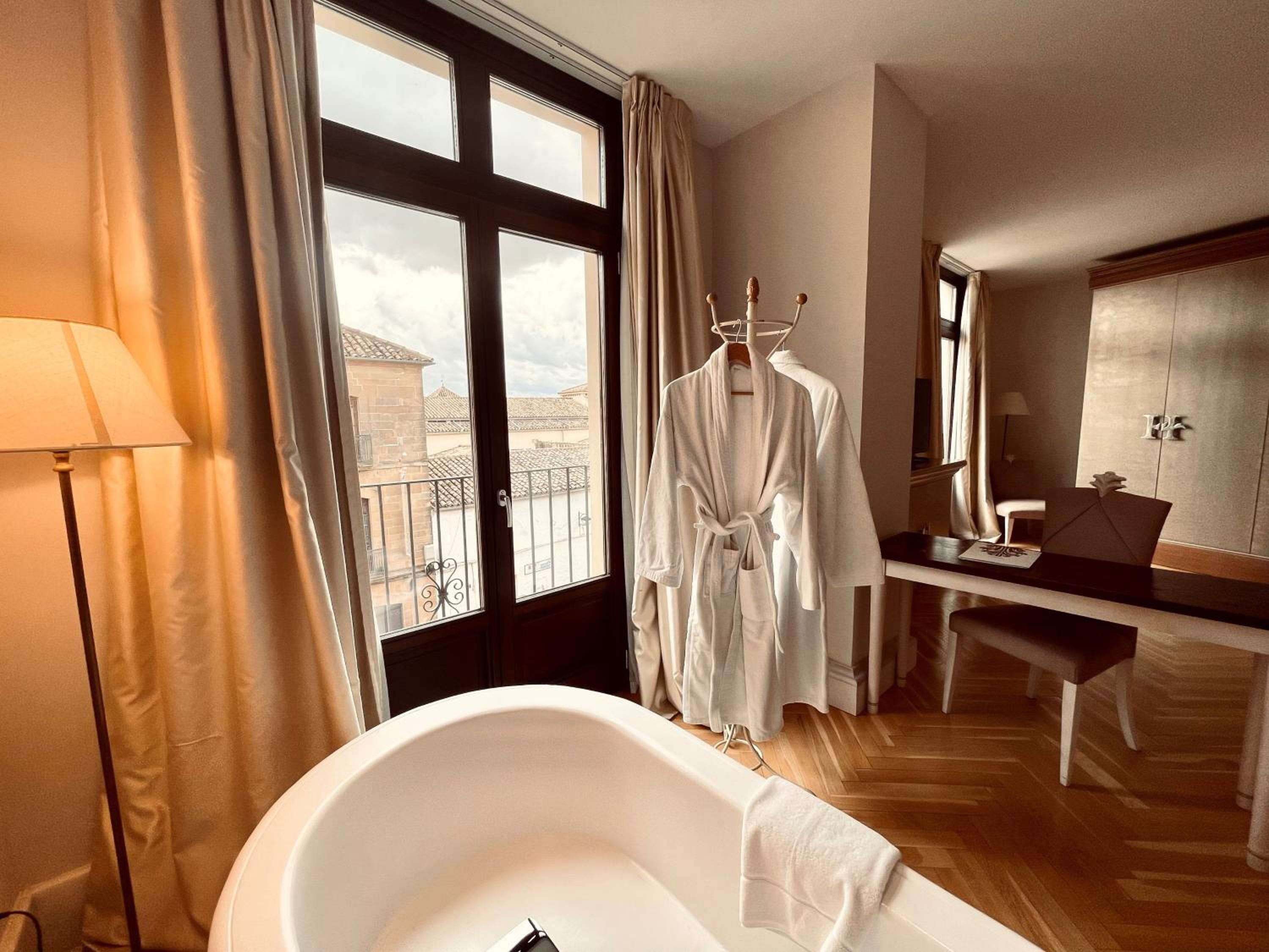 Hotel Palacio De Úbeda 5 G.L offers 5-star luxury with beautifully appointed rooms featuring modern amenities such as flat-screen TVs, air conditioning, and private balconies. The safety deposit boxes provide peace of mind for your valuables.