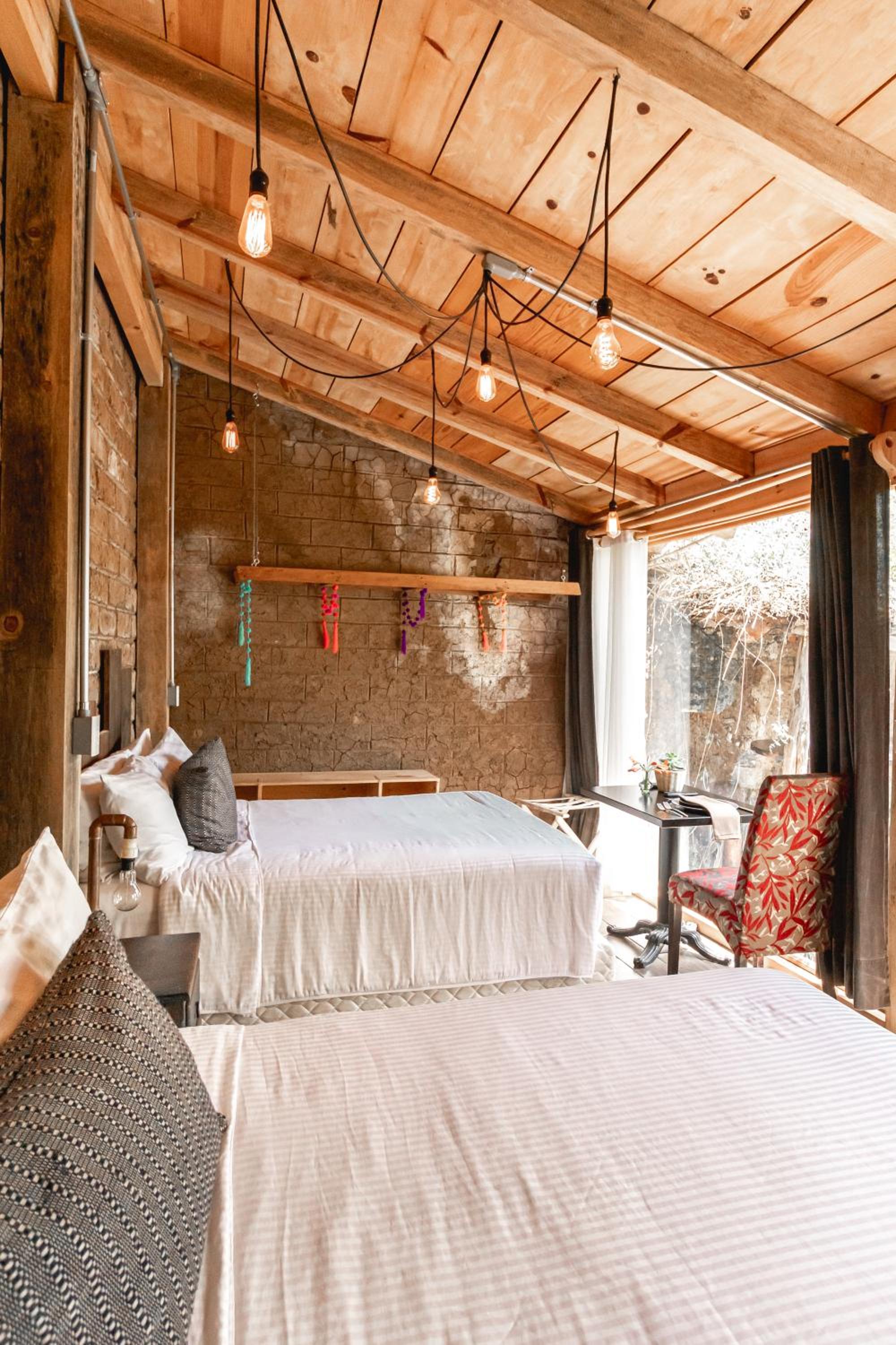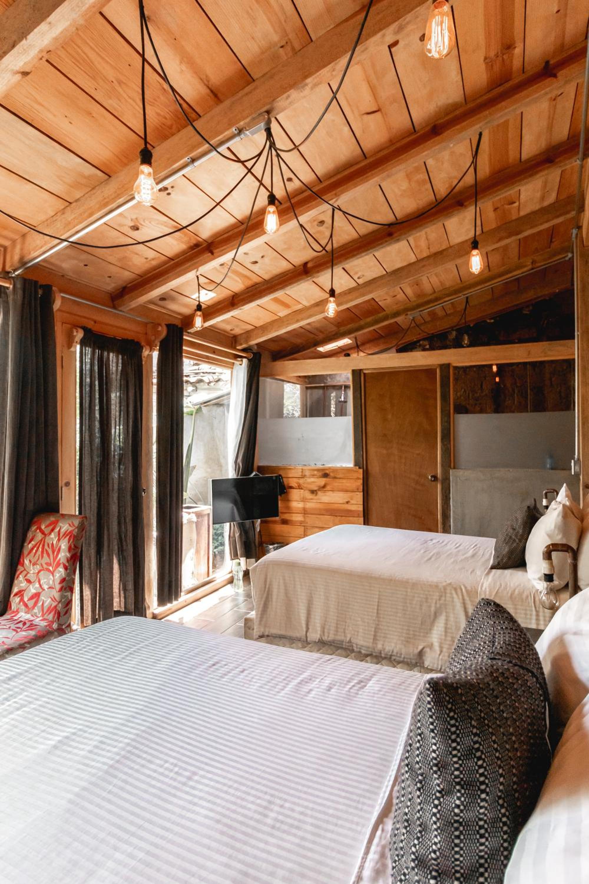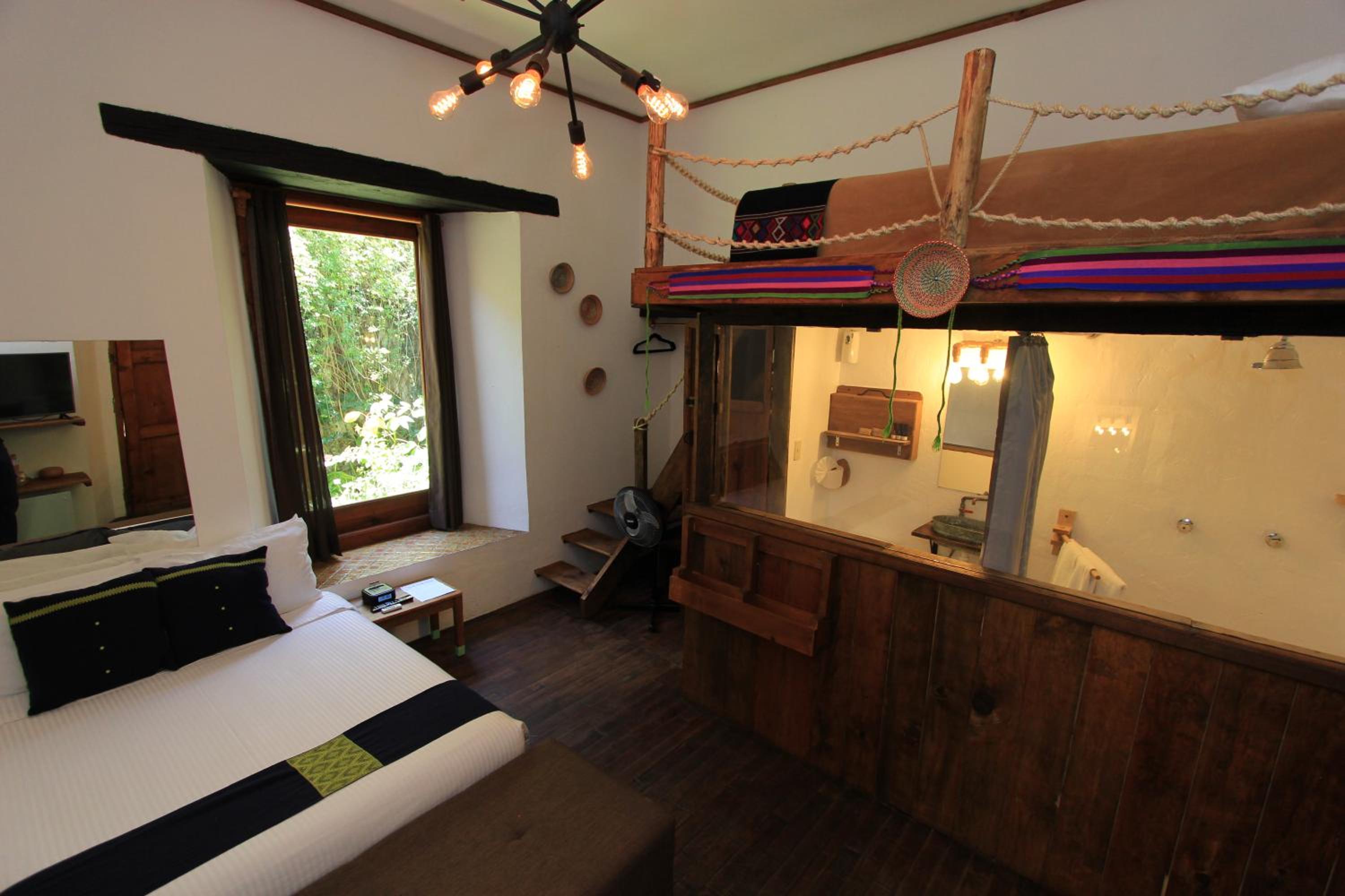 El único detalle es que en la habitación. Tiene un tragaluz Justo arriba de la cama y con esa luz no se puede descansar