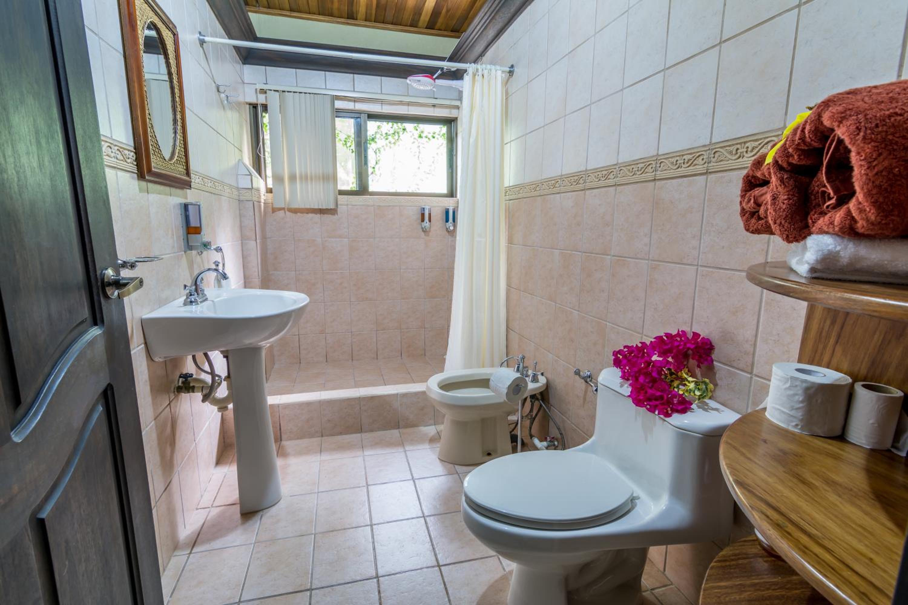 La atención, amplitud y prolijidad de todo el lugar, tienen pileta y un parque con arboles y flores muy cuidado, invita a quedarse y disfrutar de las instalaciones. Tiene televisión. Es fácil llegar todo asfaltado, en un barrio muy tranquilo y está a unos metros del desembarcadero del manglar para hacer kayak. Nos ofrecieron elegir habitación ya que tenían varias disponibles, tomamos una más grande; y nos permitieron quedar en la habitación sin apuro de check-out. Tienen espejo de cuerpo entero.