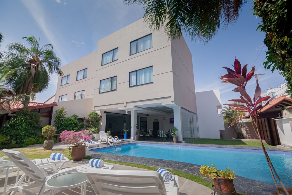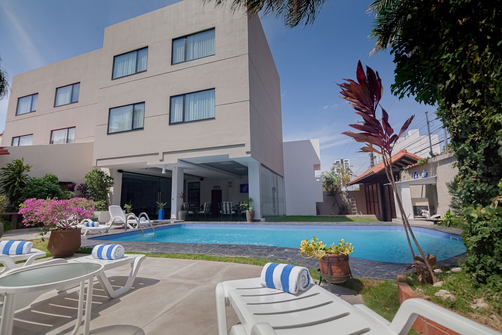 Outdoor Pool, Terrace, and Garden - Enjoy the sunny Santa Cruz weather by taking a refreshing dip in the outdoor pool, unwinding on the terrace, or strolling through the lush garden.