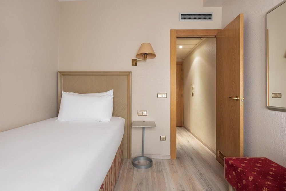 Sängen är för kort när en normallång svensk man. Rummet saknar mörkläggningsgardiner, vilket gjorde att ljusen från de rum (även vårt rum) som hade fönster mot innergården störde varandra. Burgos är en liten stad, allt låg inom promenadavstånd.