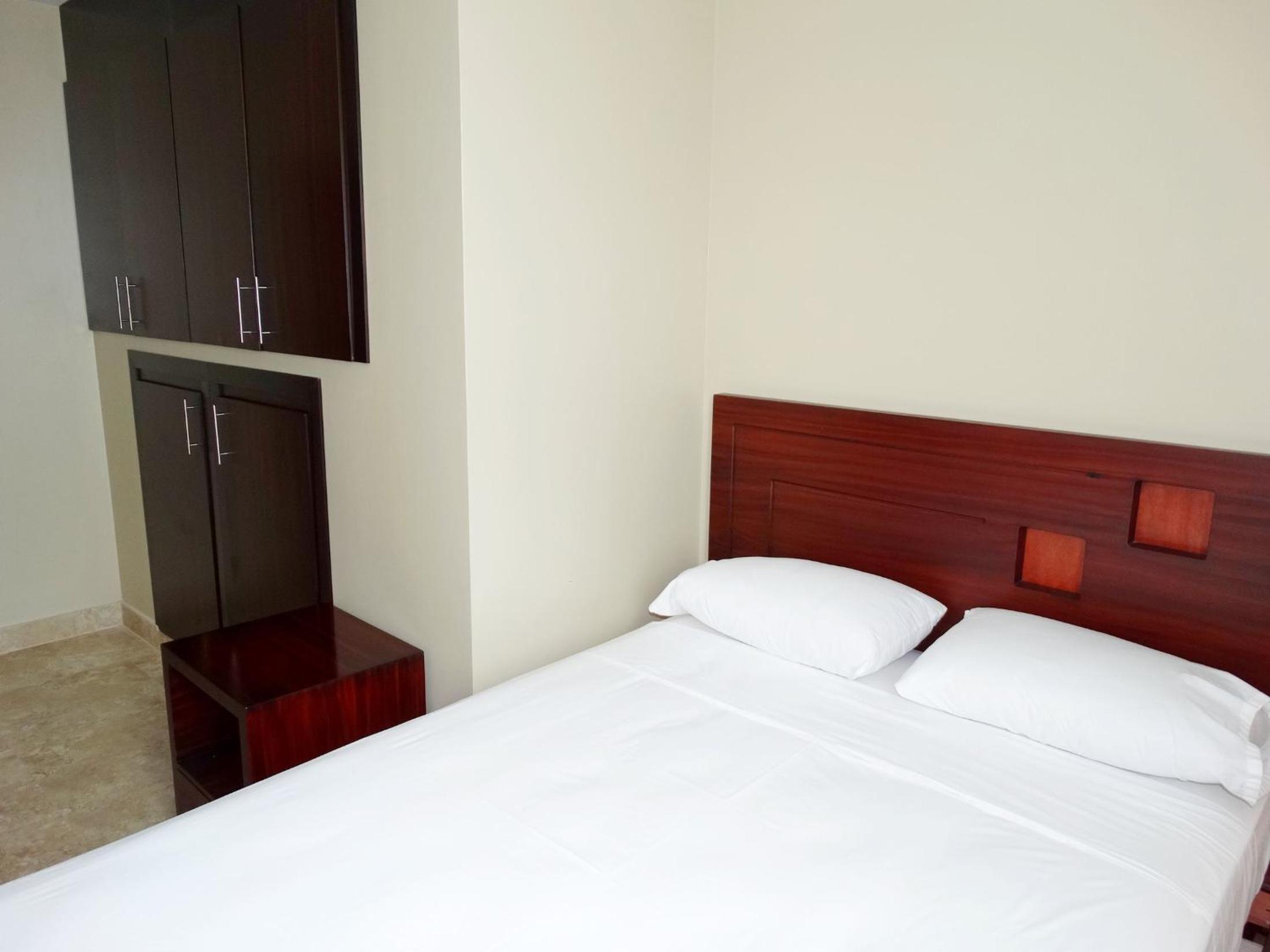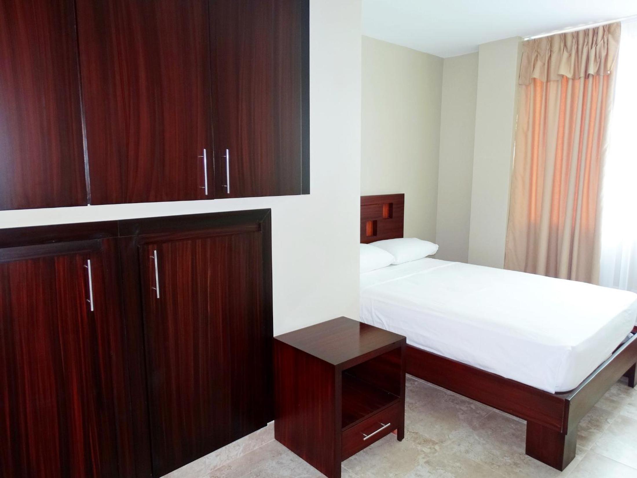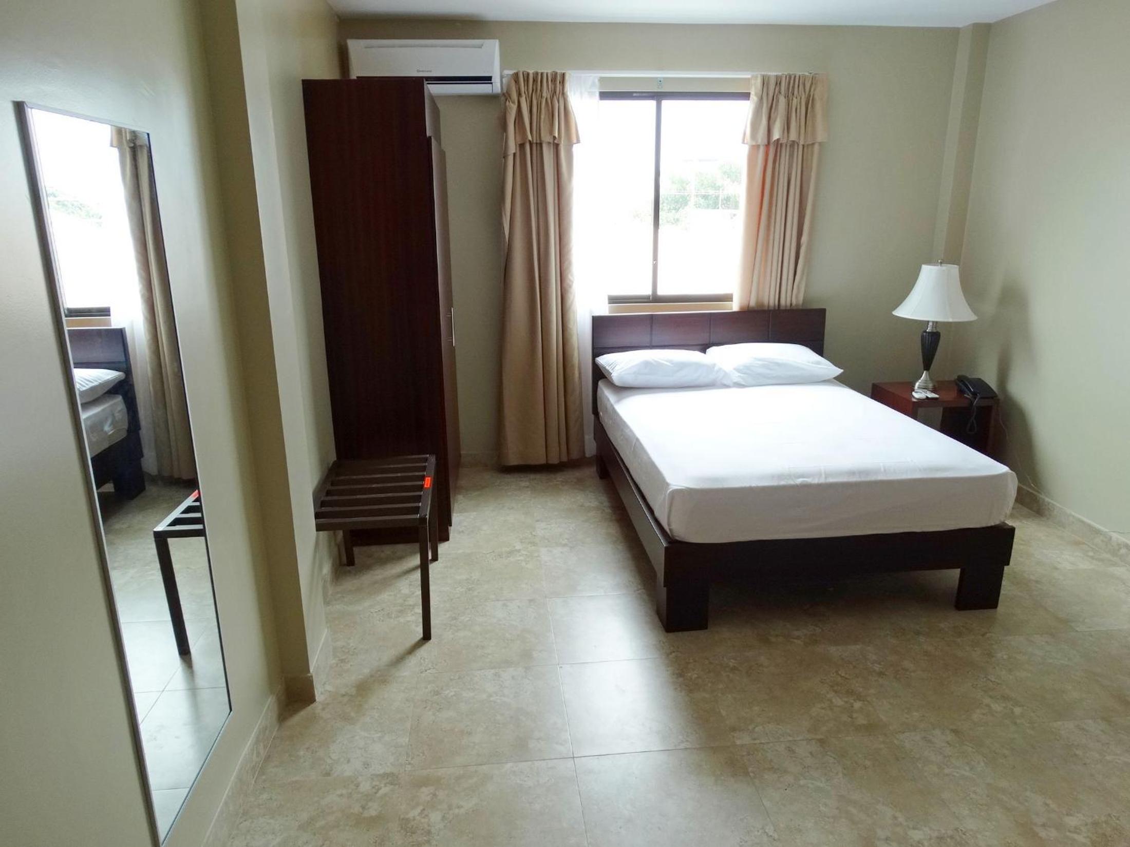 I think they switched the names of their two locations on the same street. I booked Marvento Suites which should be closer to the center of the Malecon than Marvento II. But We ended up in the prior Marvento II location further away instead and it was renamed Marvento Suites. This makes it a longer walk to the central area. So, Marvento II is now the better location. The room was basic and bed and pillows uncomfortable. No fridge in room to keep water or juice, nowhere to purchase bottled water or anything else to drink on premises, not even a vending machine. Breakfast is free but no buffet. Just your basic scrambled eggs with two buns, and coffee or tea and a glass of fruit juice. Room has nice work desk but no electrical plug next to it. Close needs a facelift and cleaning.