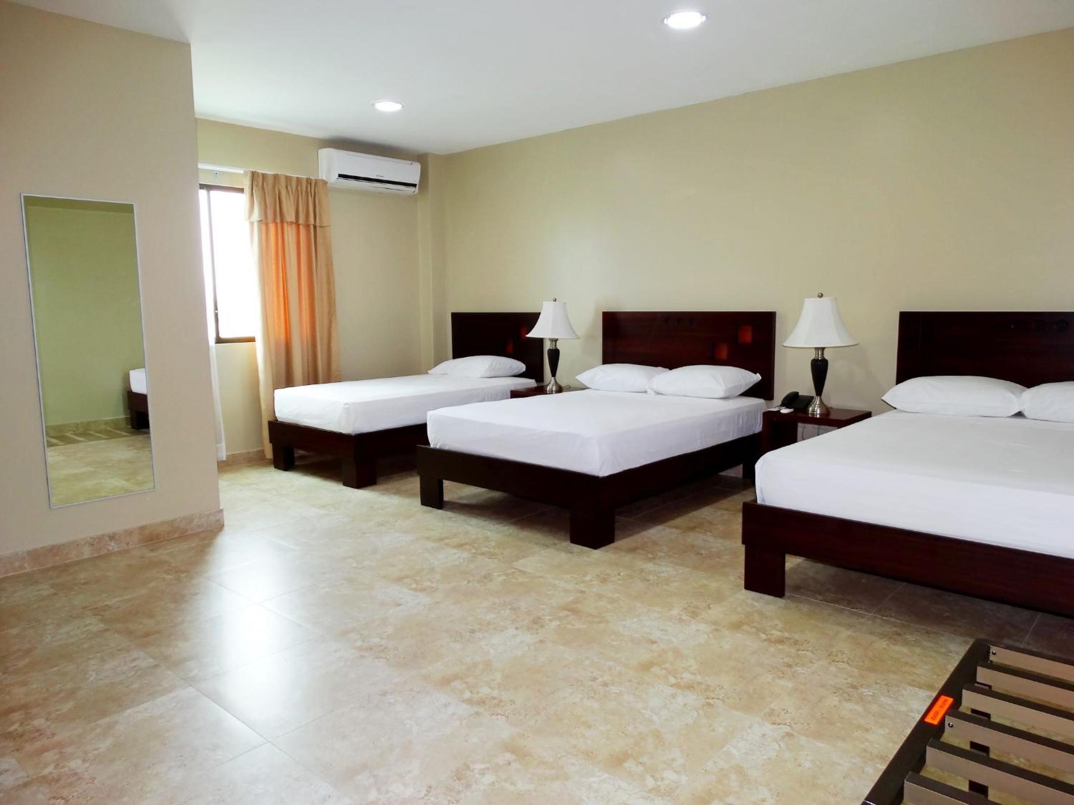 Está súper cerca de la playa, está a media cuadra, el cuarto en el que me hospedé súper amplio, el aire acondicionado perfecto, todo limpio