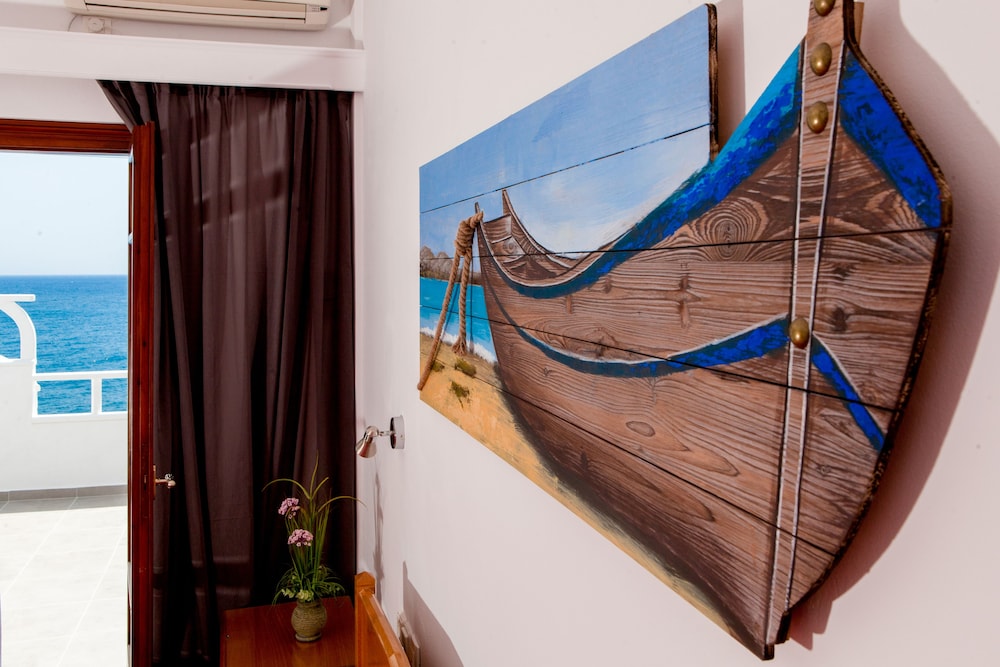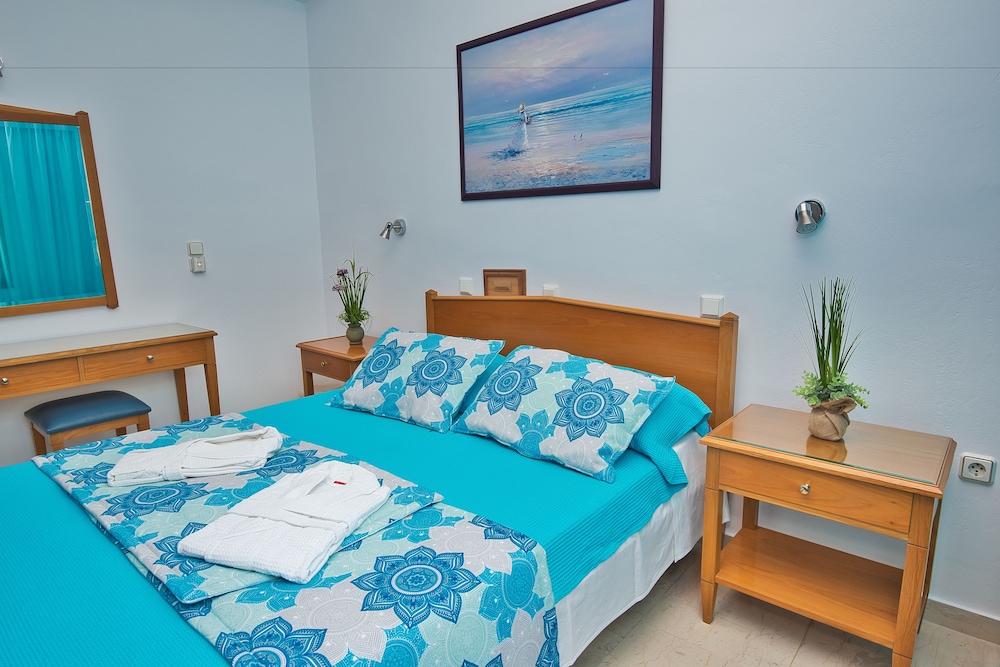 We were welcomed in with a friendly face. Kiki was helpful and spoke english. Our room was perfect. The balcony overlooking the beach was perfect. I highly recommend this lovely little hotel.