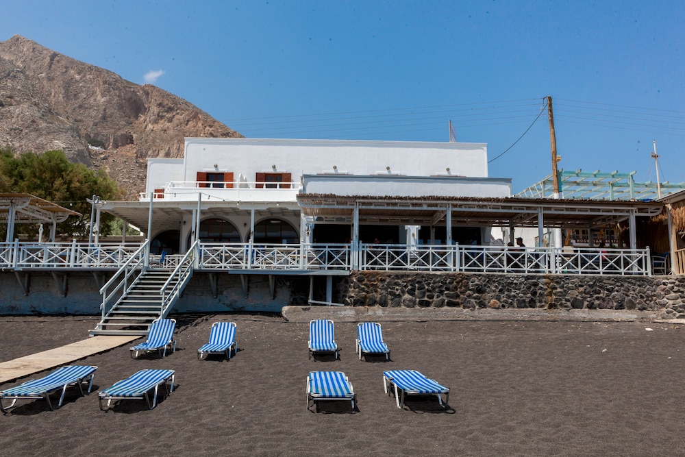 Great views, very clean and comfortable room and bathroom with kettle and fridge. Very close to the hiking paths that lead to Ancient Thera, Perissa, Prophet Ilias. Right on the beach too so you can see the sunrise.