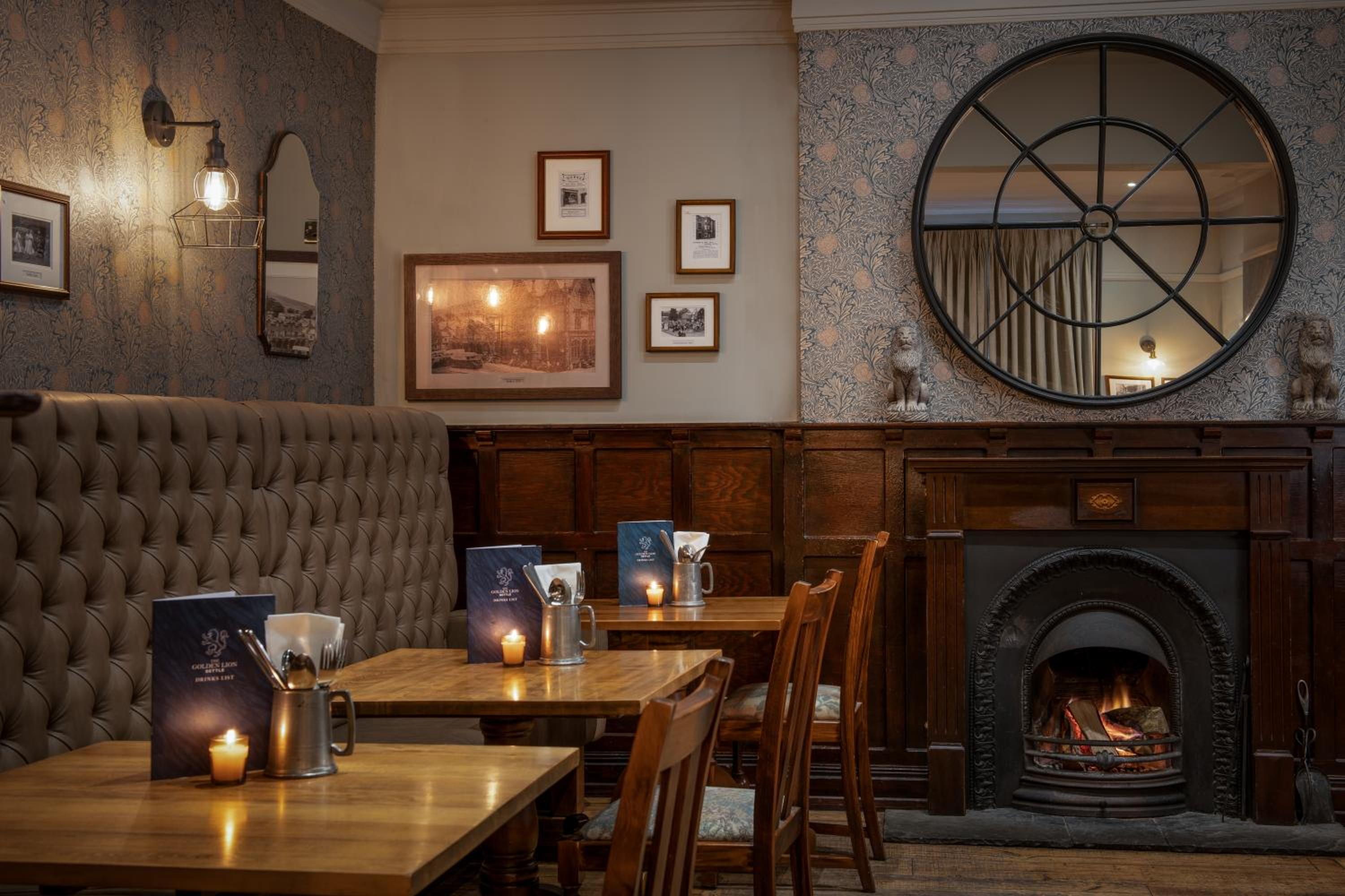 Experience the quaint charm of The Golden Lion at Settle, a 17th-century property with original features, including a stunning Inglenook fireplace in the bar.