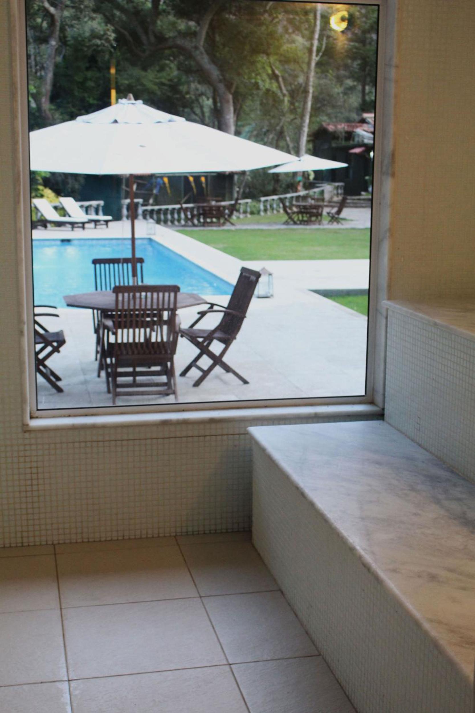 Restaurante, limpeza e piscina.