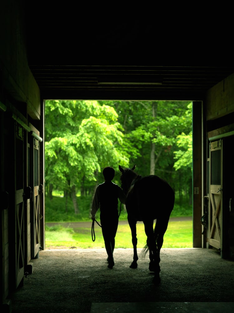 見渡す限りの芝生と、そこに佇む建物。馬が草を食み、小川の音が流れている、日本とは思えない素敵な雰囲気のところです。
