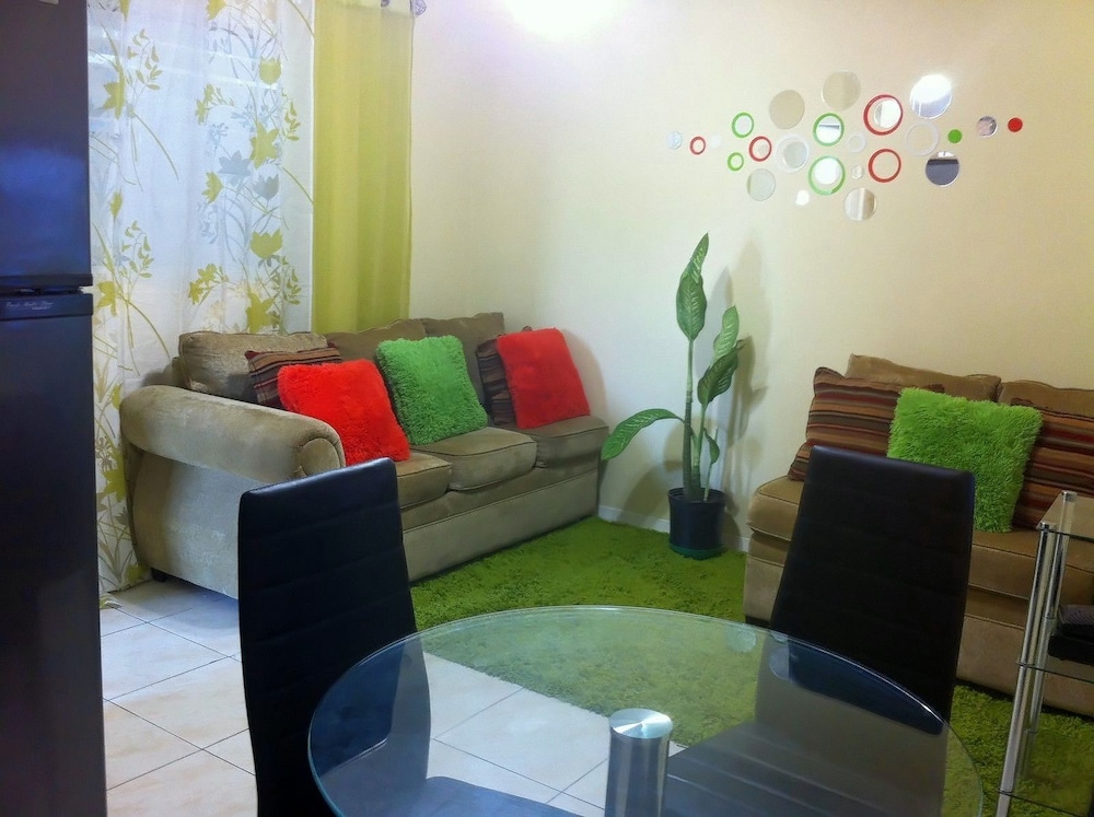 The apartment was well kept, clean, has everything we needed including, WiFi, AC, hot water, pots and pans to make meals. The management was very professional and on time. The driver picked us up at the airport and he was very informative. The apartment is on Constant Springs Road and it is a quick 3-minute drive to Half way tree. Since it was on the beating path we did not even need a car to get around. The guards were also very helpful and directed us to all the happening places around the city. Wonderful stay, great vacation, I highly recommend this spot to all visitors and locals, I would stay there again.