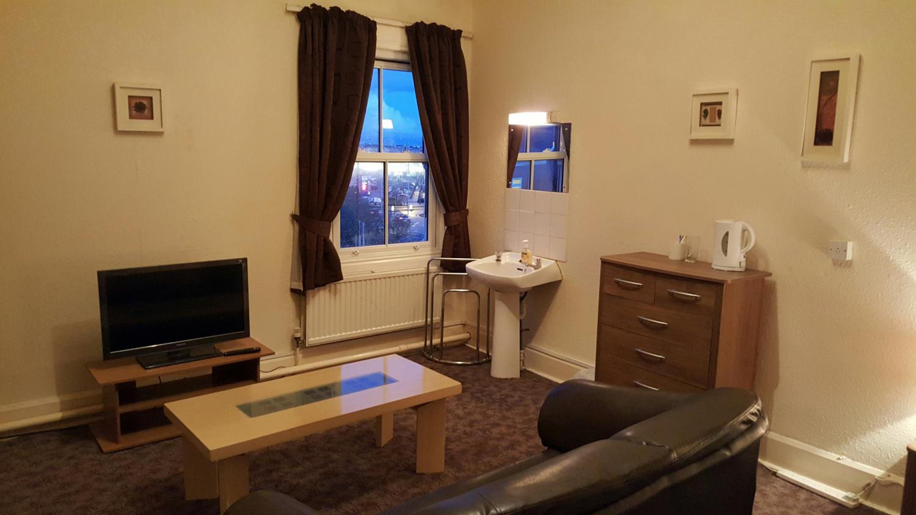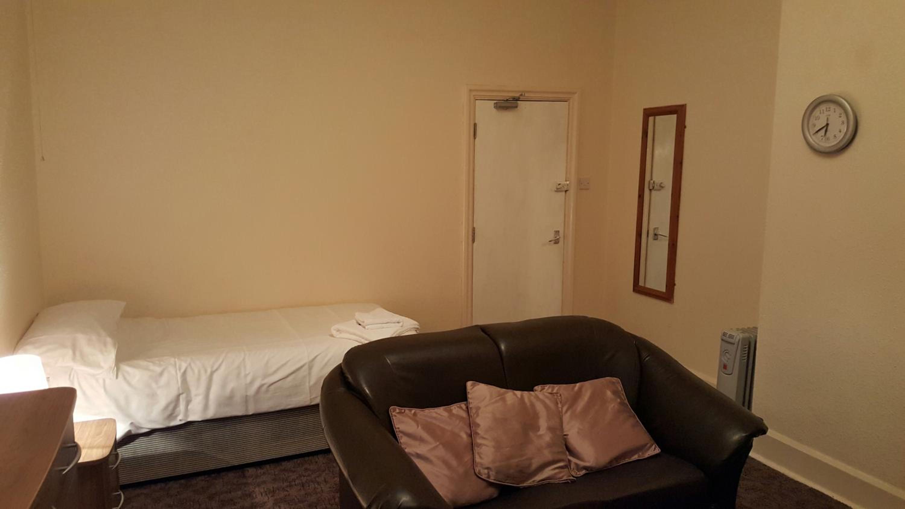 The hotel offers comfortable rooms with a seating area, TV, and kettle. The shared bathrooms are well-maintained, providing convenience for guests during their stay.