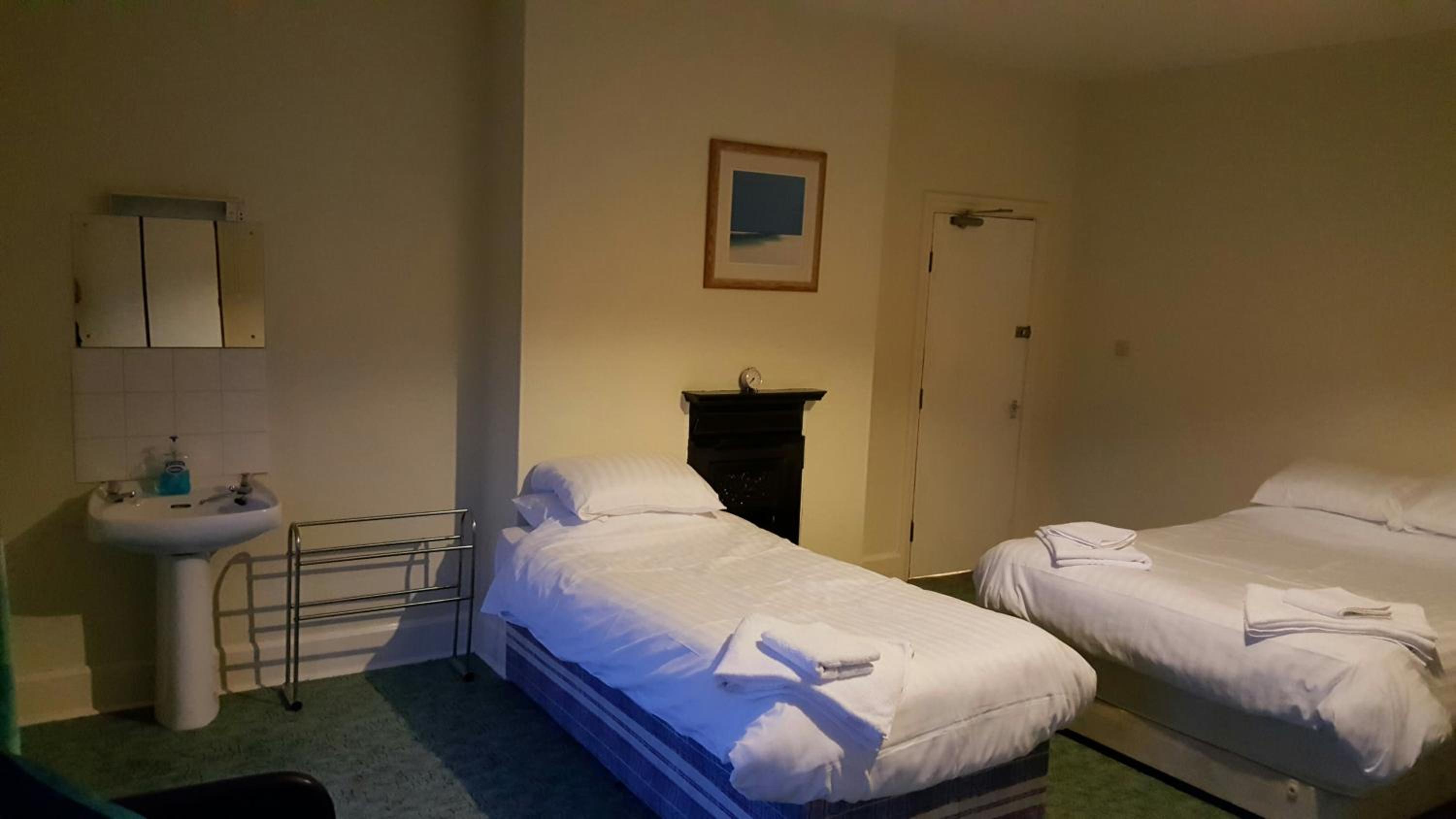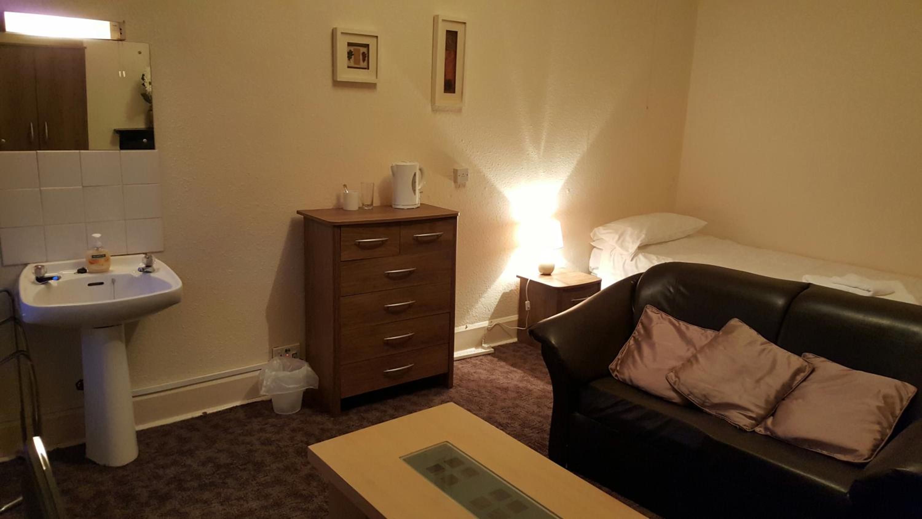 The room was a large family room - a bit too big for one person, but the single bed was clean and comfortable. Plenty of towels and an added bonus of having it's own washhand basin, as the shared shower room (with toilet) was across the corridor. I couldn't use the coffee maker as there were no instructions, and no kettle to boil water. However there were plenty of milk sachets and biscuits!!