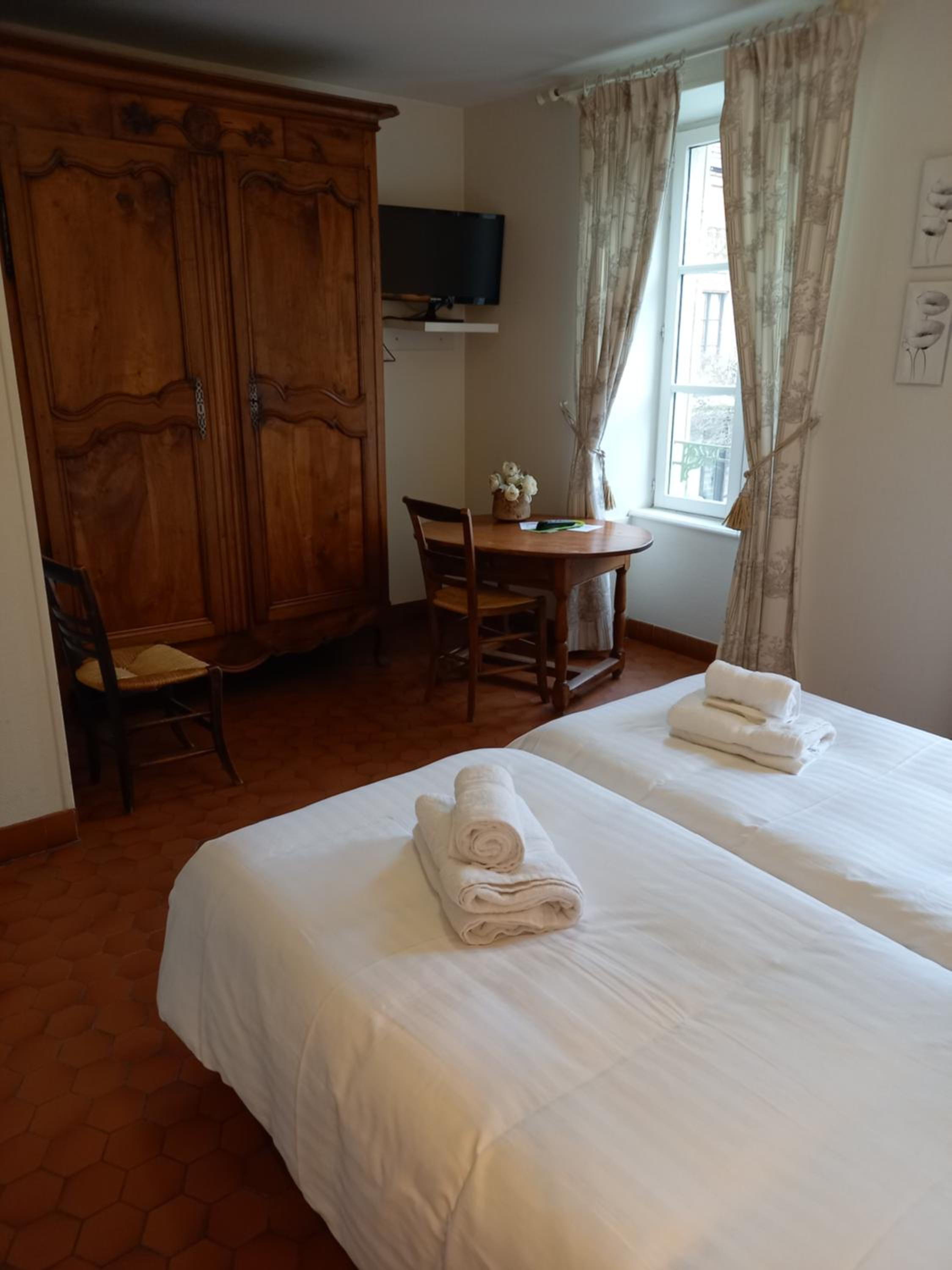 De intieme Franse sfeer sprak ons aan. Een romantische hotel aan een binnen cour in het hart van het middeleeuwse Nolay is het ultieme genieten. De kamer was ruim en de sanitaire voorzieningen netjes en schoon. Parkeergelegenheid voor het hotel was ook erg praktisch.