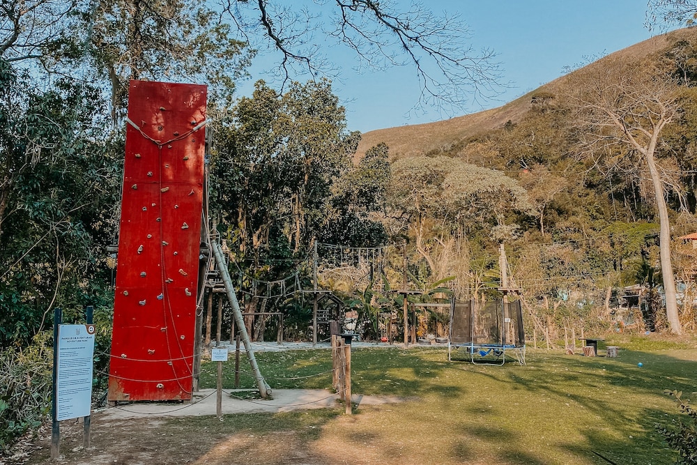 As fotos no site não condiziam com a realidade. A falta de manutenção era escancarada! Nosso quarto tinha mofo na parede atrás da cama, a iluminação ruim, no banheiro a tubulação passada por dentro do armário, as janelas enferrujadas. Nos deu a impressão que estávamos fazendo um favor aos funcionários, pois eram sérios e de cara emburrada. Fomos com crianças e a “tirolesa” foi um atrativo, quando chegamos não estava funcionando. Na área externa que seria o parquinho, TODOS os brinquedos quebrados e mal cuidados. Haviam TOMADAS instaladas neles, segundo o hotel foi pra abastecer a energia de uma festa que havia acontecido, porém permaneciam ao alcance de crianças. Os travesseiros eram de muita baixa qualidade, finos e duros. Havia uma sala com microondas que estava insalubre. Fomos embora antes mesmo da nossa estadia acabar. Não recomendamos o hotel neste momento. É necessário passar por manutenção de grande porte.