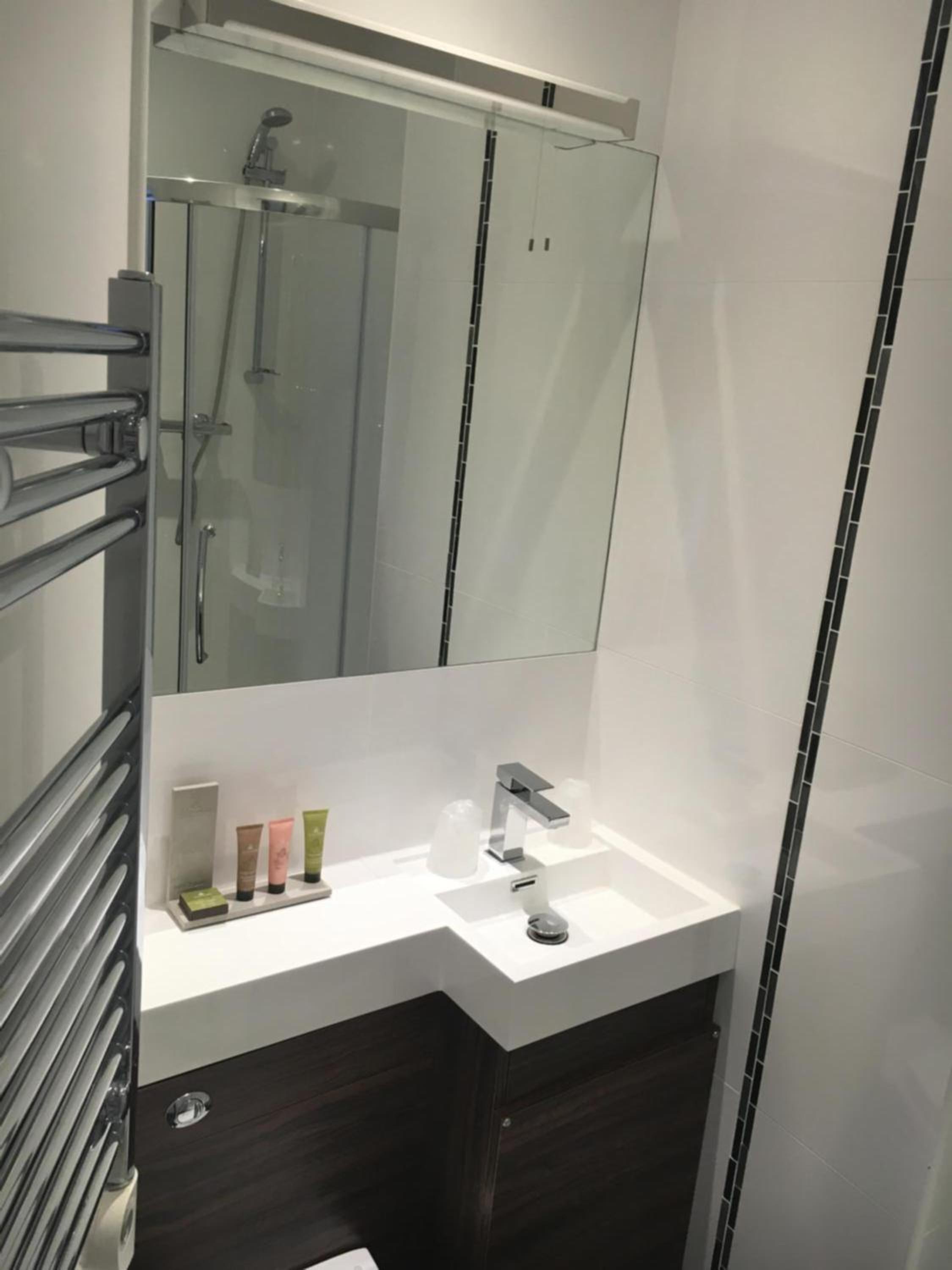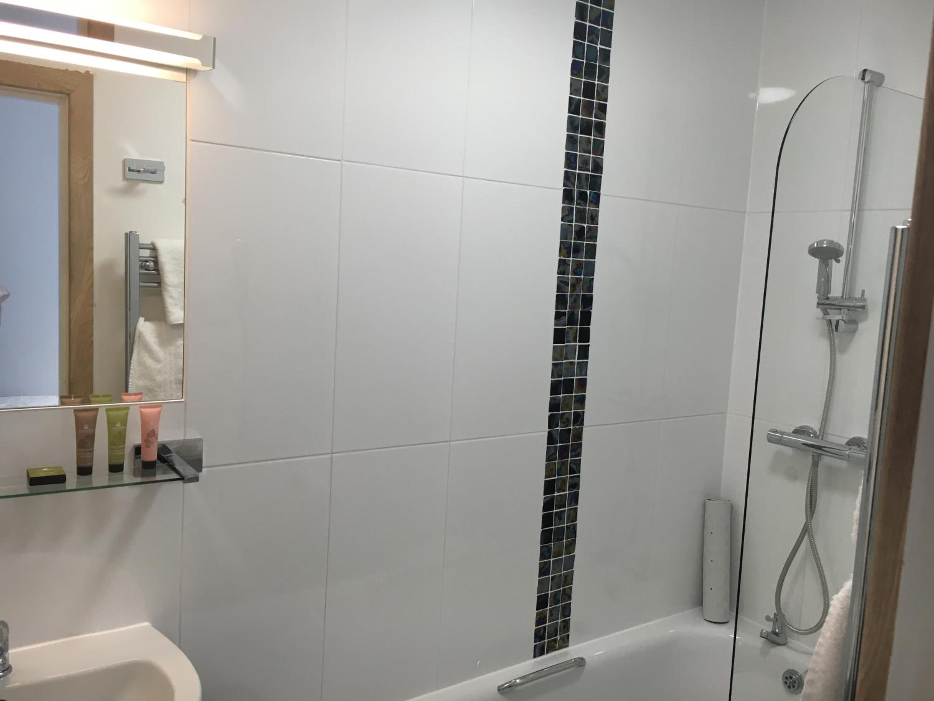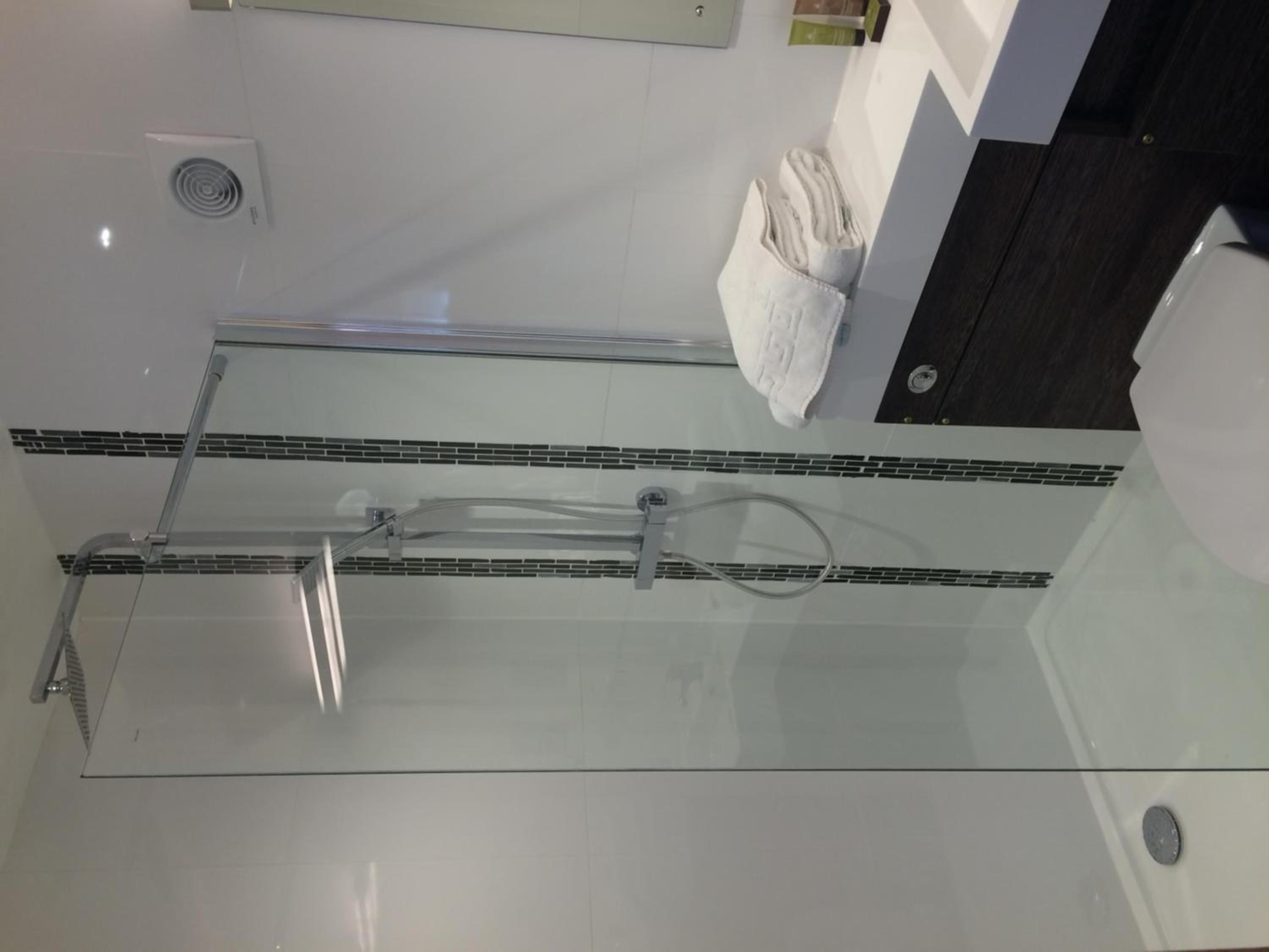 we were in a room that had an adjoining door to the next room and the shower cubicle was hard to get into as the glass panel was fixed and we had to manoeuvre around it