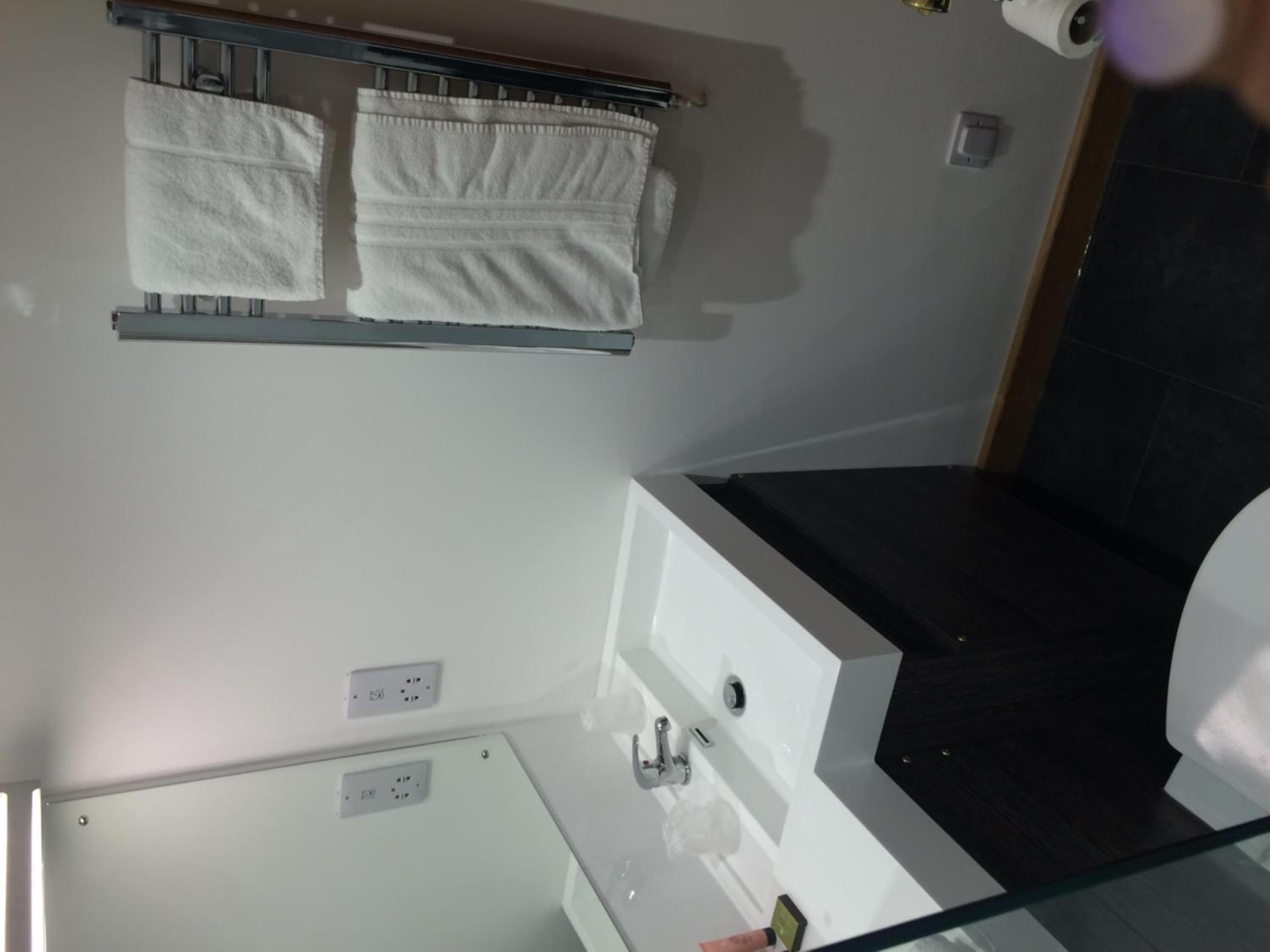Bedroom, small bed, sink slow draining, no sockets next to bed head.