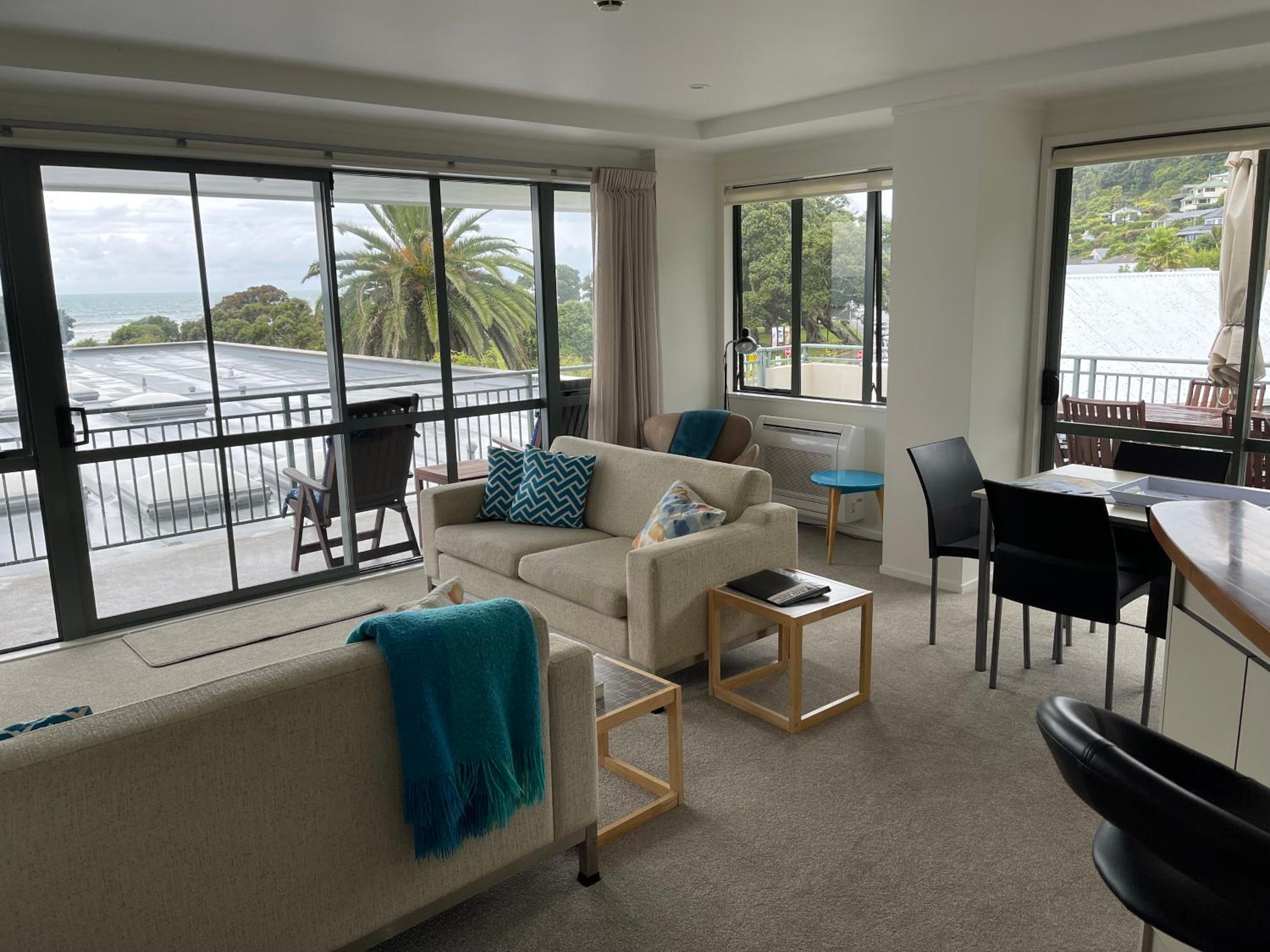 Beautiful oceanfront view from the balcony, and kids loved the pool. Just across the street from the beach and two-minute walk to a couple of cafes and restaurants. We also appreciated the kids' toys and DVDs, boogie boards to borrow, grill in the common area, covered garage for our car and bikes, and full, well stocked kitchen. Staff were extremely helpful and went out of their way on multiple occasions to accommodate a few of our special requests.
