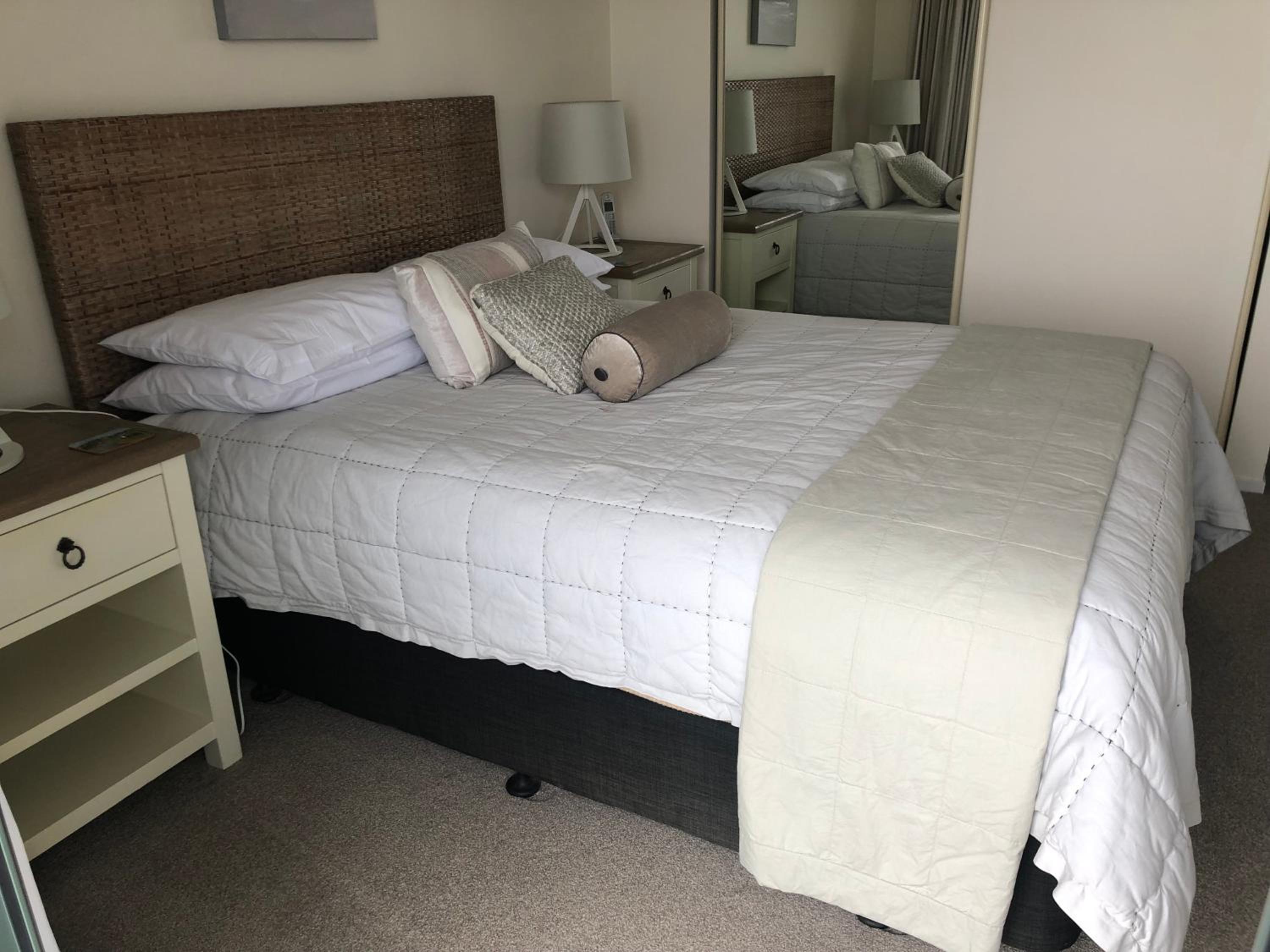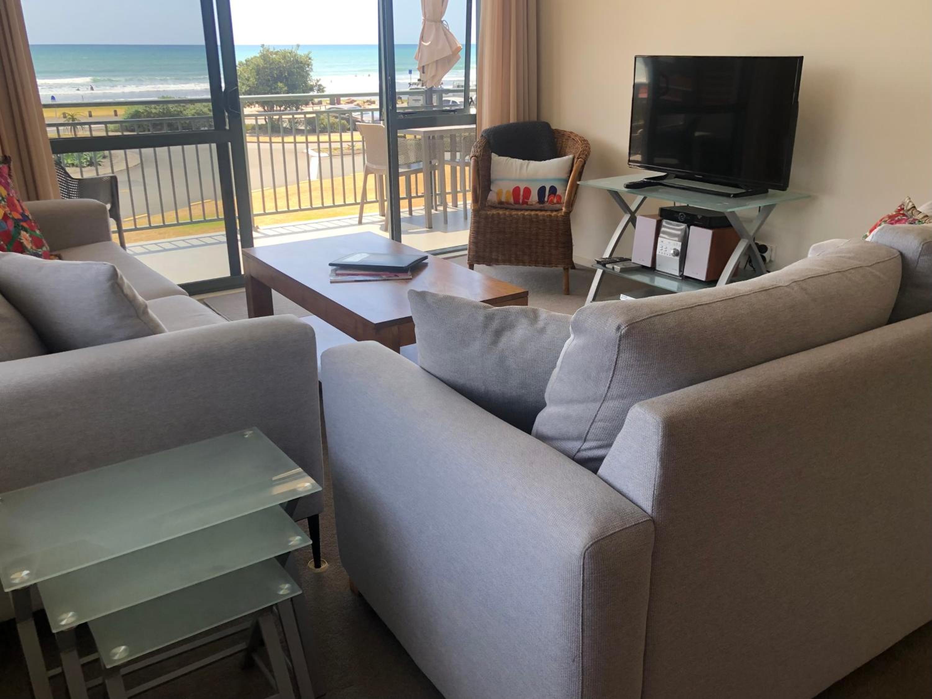 A lovely lady in charge, showed us around .This place is like a resort. The Apartment was spacious and very clean.It had everything you needed, such as a fully equipped kitchen. Extra towels for the beach or pool.Even boogie boards to use The bed was very comfortable.It had an amazing ocean view.Secure parking.Surf Club over the road.Great cafes in walking distance.We went fishing on the local Wharf on our way home and caught a decent fish too. One of the best we've stayed in and we will definitely come back.10/10