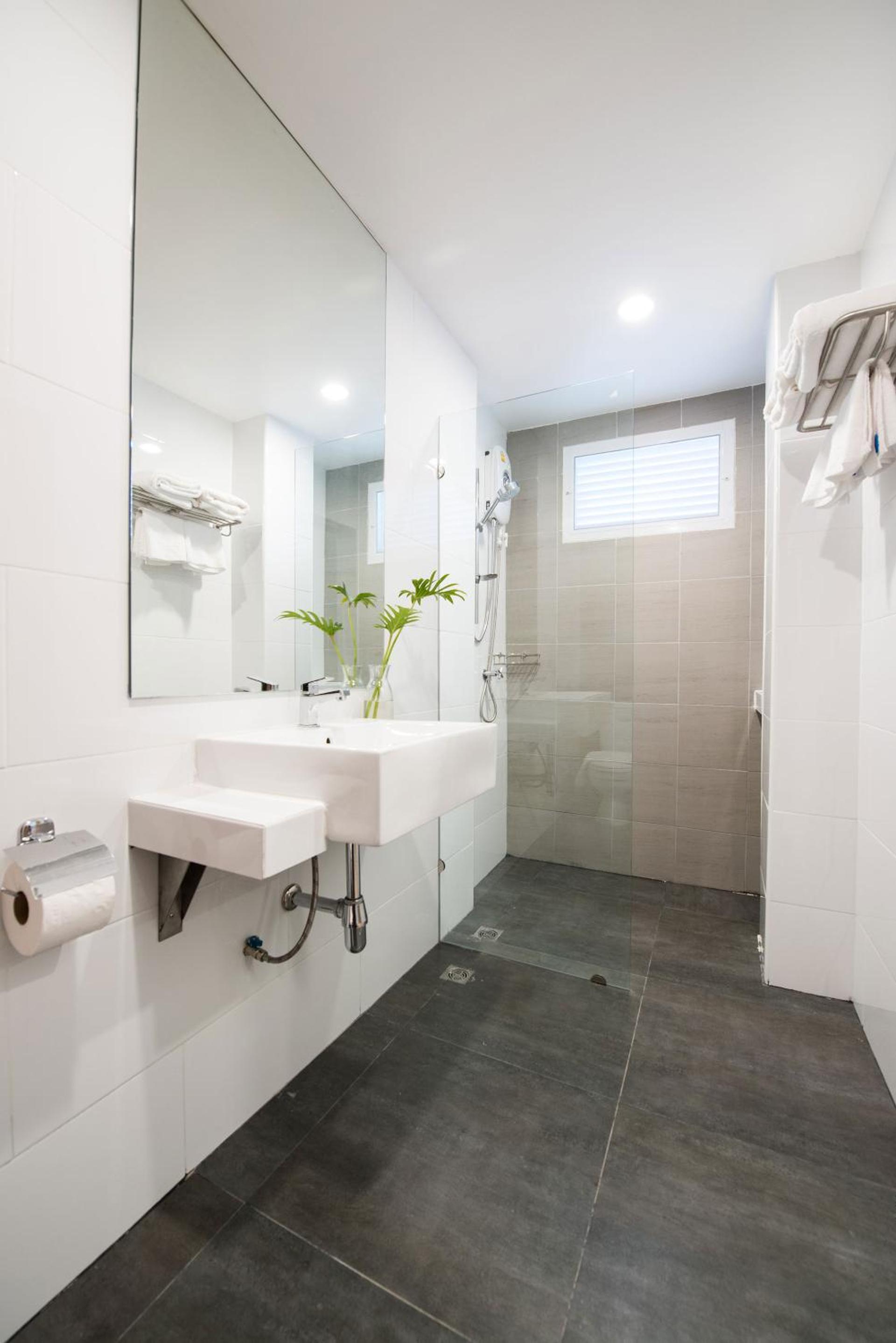 ไม่มีไดร์เป่าผมตามที่ระบุไว้ ห้องมีกลิ่นอับ ในห้องน้ำมีหน้าต่างที่มีมู่ลี่ แต่มูลี่ขาดเป็นบางส่วนไม่ได้มีการซ่อมแซม รู้สึกไม่ปลอดภัยเวลาเข้าห้องน้ำ โถส้วมมีคราบเหลือง