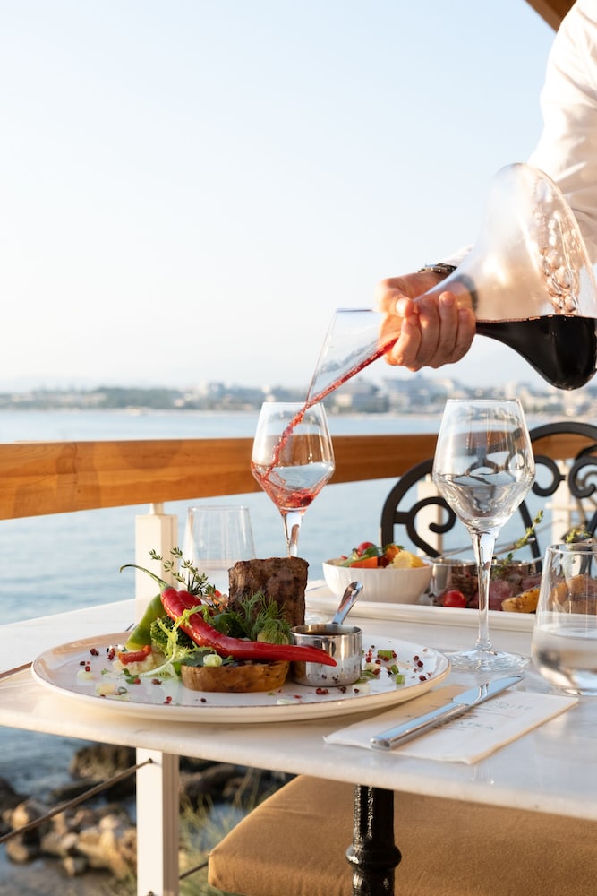 Nydelig rom med havutsikt og liten balkong. Svært gjestfri personale og deilig restaurant - midt i antikke Side IG likevel stille og behagelig - kommer tilbake garantert