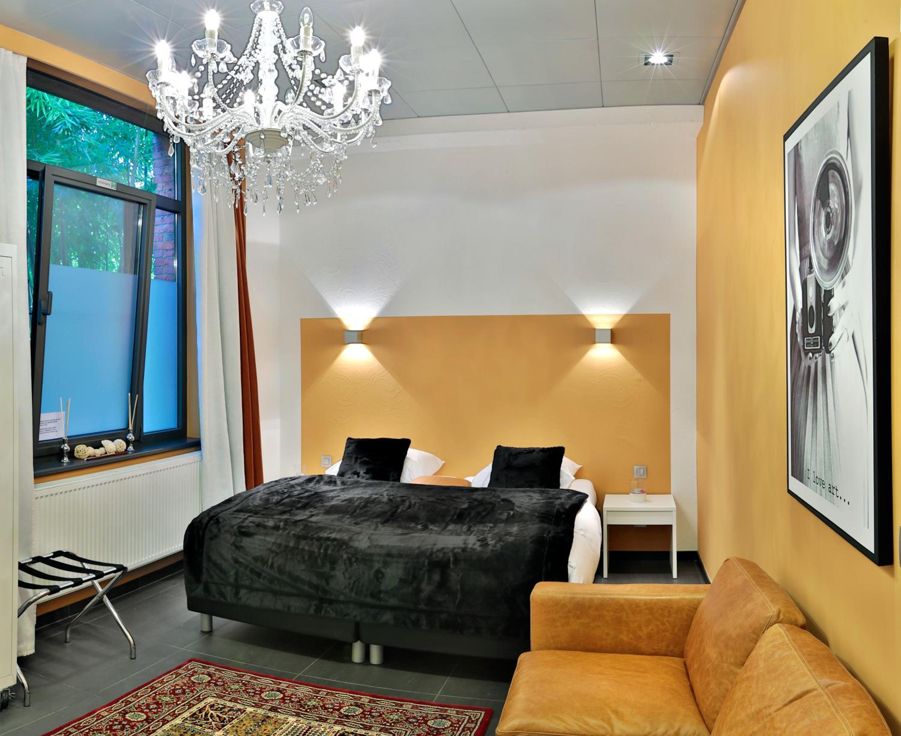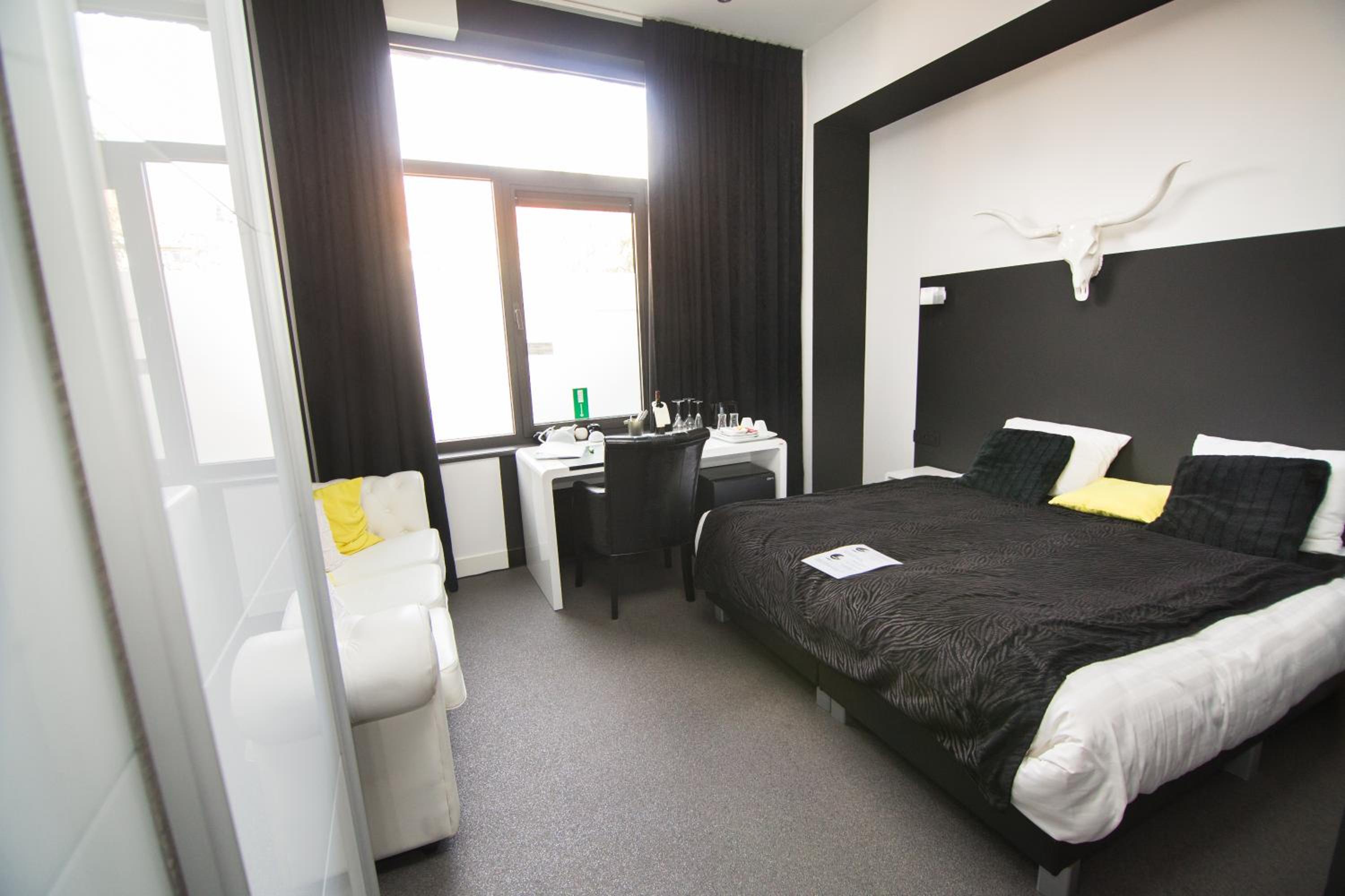 Hotel Moon in Sint-Niklaas offers spacious rooms with free Wi-Fi, sofa, tea facilities, desk, and modern bathrooms with walk-in showers.