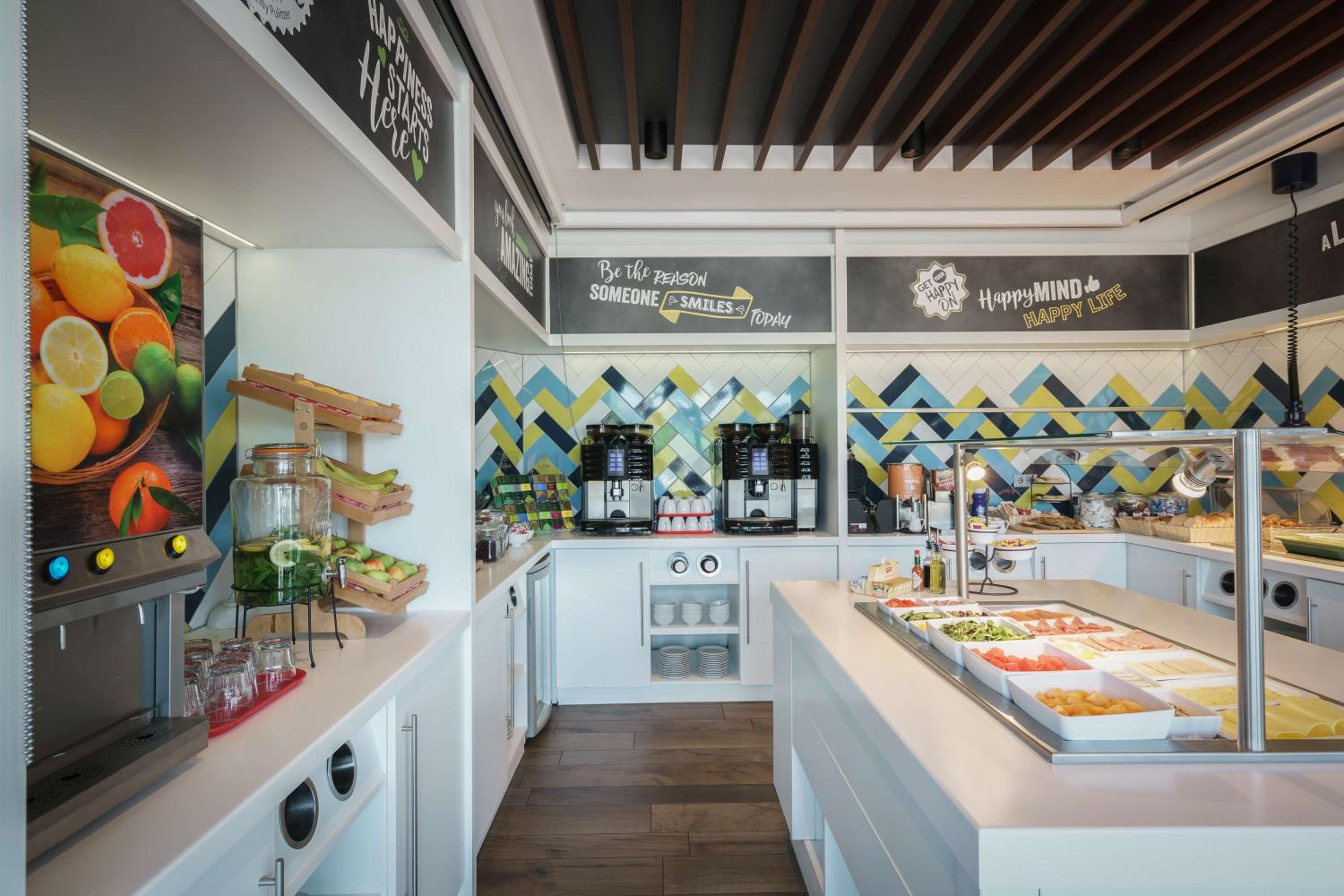 Ontbijt was goed maar het buffet een beetje krap. Na de 2e dag pas gezien dat er yoghurt was in een koelkast onder het buffet. Afzuig systeem sprong soms spontaan aan. Keep dispenser lekte een beetje.