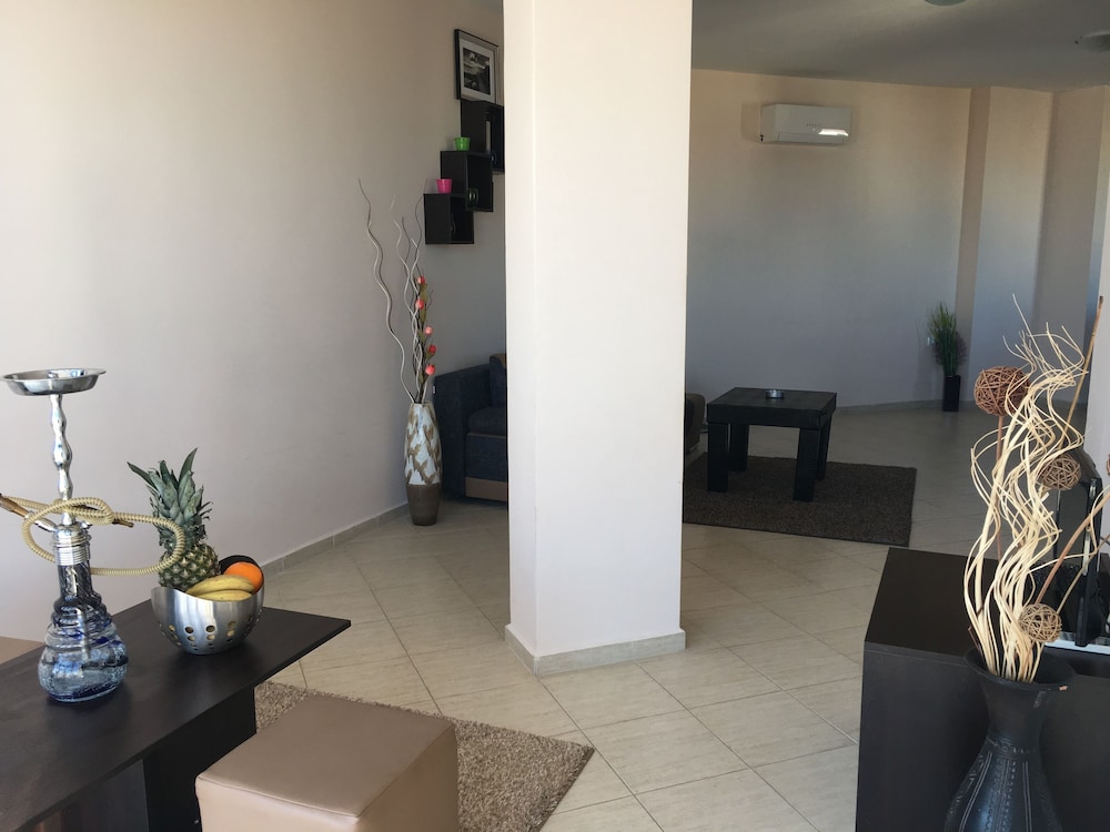 Ехали к отелю из Греции (800 км). Приехали 21.30. Бумажная вывеска на подъезде Salt Lake Apartments смутила сразу. Вышедшие из дома женщины сообщили, что это квартиры. Долго искали отель, такого отеля никто не знал. В итоге вернулись обратно. Встретили охранника, сидящего на ступеньках на улице. Он сказал, что дом жилой, но квартиры сдаются. Посоветовал прийти завтра в 8 утра, чтобы нас заселили. После переговоров приехала милая девушка, которая открыла офис по продаже недвижимости, дала нам ключи и мы пошли искать "номер" по темным коридорам. Сопроводить нас никто не удосужился. Стойки Reception, конечно же, в жилом доме нет. Номер оказался обычной недоделанной студией, где "дырка в полу" под душем (причем, ни кабинки, ни занавески не было - просто торчащий из стены кран с гибким шлангом и рассекателем) была намертво заделана, и вся вода от работы душа стекала в другую дырку, расположенную под умывальником. Ни мыла, ни туалетной бумаги мы там не нашли. Двери от сырости расслоились, на стенах пятна... На кухне чайник, кое-какая посуда, полотенца, кровати (вполне чистые), террраса с видом на каменные джунгли и двумя совершенно разными стульями.))) Короче говоря - это не отель, и вряд ли это жилье может претендовать даже на одну звезду.((( Если ехать на совсем бюджетный отдых, то, наверное, можно там жить, закупив все необходимое для жизни в соседних магазинах.