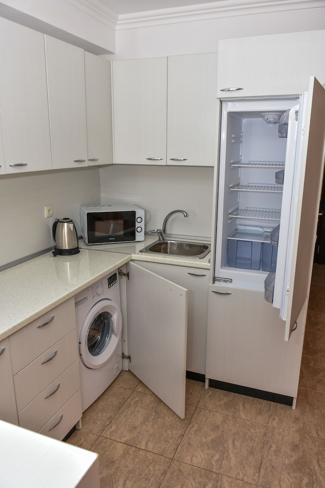 we have been 5 times to the sunny beach area and this was the cheapest & best apartments we have stayed in, great quality for what we paid. We had a 1 bedroom apartment @ the whole complex is very clean, nice pool area with proper sunbeds with soft toppers and quality parasols. It's not a massive pool but good for the complex size but the pool is freezing. This complex is 4 self catering & the apartment has everything for cooking, good size living area and decent size bedroom. Only downside was small bathroom and water went everywhere when showering (please box the shower off) Rooms cleaned every day, bed sheets only changed once in the week @ towels twice, would have better if this was more regular. Your not in your room much but TV had 150 channels but only about 5 in English.