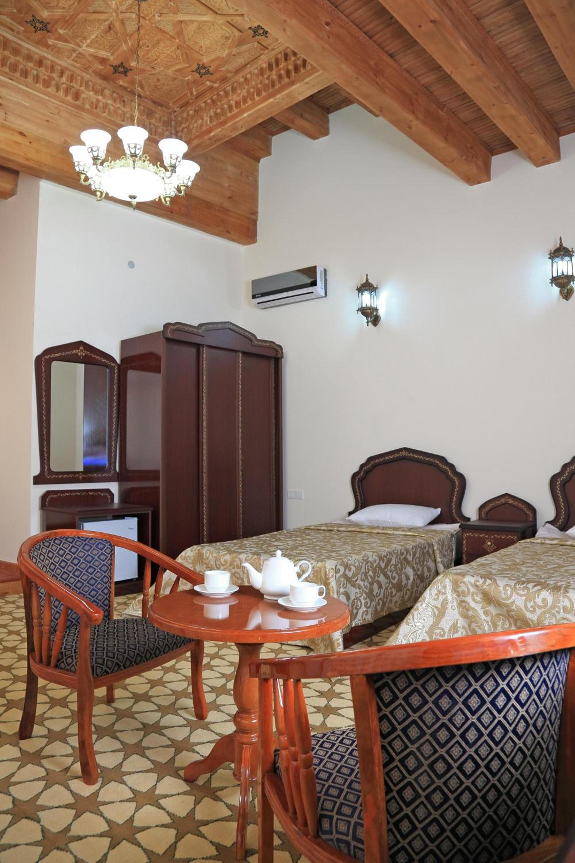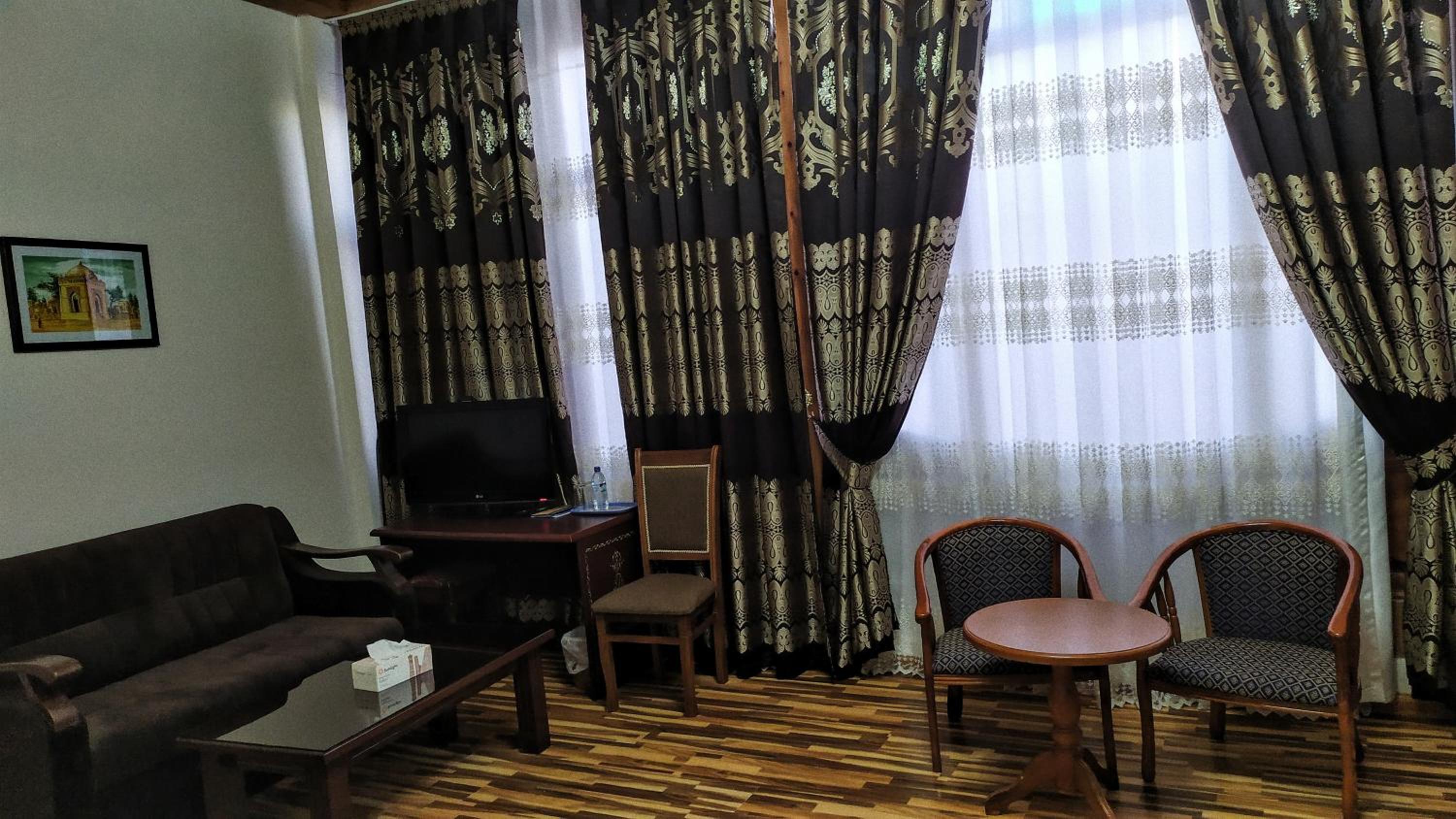 Guests can indulge in a culinary journey at the hotel's restaurant, which serves a delightful blend of Uzbek and European cuisine in a charming setting adorned with traditional ornaments.