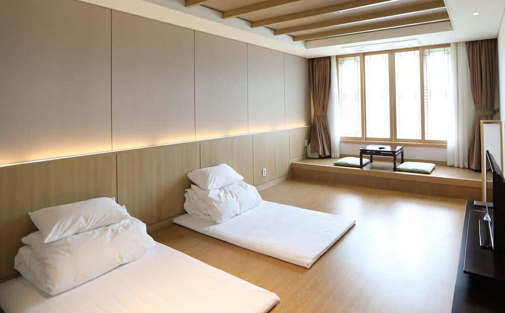 침대가 두개여서 아들들이 하나씩 차지했고 저희 부부은 온돌방에서 수면을 취했습니다. 굉장히 청결하고 화장실과 샤워실도 양쪽 방에 하나씩 있어서 4명이 사용하기에 너무 만족했습니다.