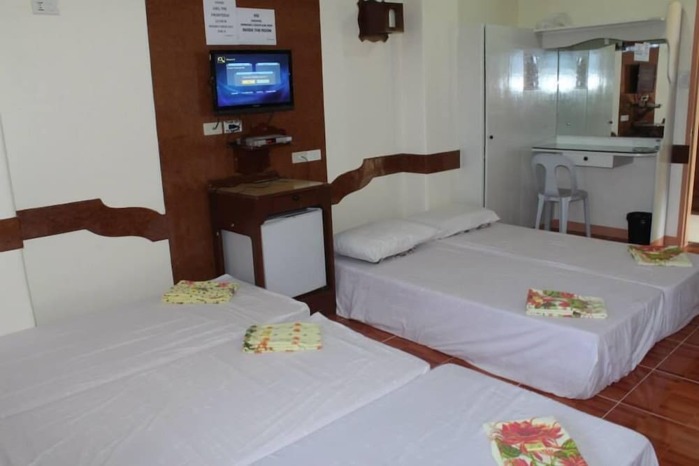 I was booked thru hotel.com and upon check in, I showed them my email with my confirmation #, I was told I was not booked. I’ve waited for 2 hours in the lobby with another family with the same situation that we’re booked but no name on their list of reserved guests. I was worried, too much stressed and scared that if I cancel my reservation thru hotel.com I get no refund and if I’ll check in I’ll pay. Staff tried to contact hotel.com but won’t answer because it’s international according to her. Finally I was checked in after 2 hours. There’s a problem between this hotel and hotel.com. According to them, hotel.com confirmed my booking but the hotel didn’t confirmed yet their rooms availability to hotel.com. I booked a family of seven (7) but only 3 double beds provided and one of us slept on the floor (with foam). On breakfast, only 2 is free and I paid 5 more breakfast paying P750.00. Our food were serve after an hour, only one staff in the kitchen who does everything. While having our meal on the lobby lunch area it was too hot no electric fan nor aircon. There’s A/C but don’t know to operate. This hotel don’t deserve a star, hostel is far better than this. Staff needs customer service training and systems upgrade. There was a guy who helped us brought our luggage up I forgot to asked his name, he was so helpful, funny, and friendly-accomodating, for him he is 5 star.