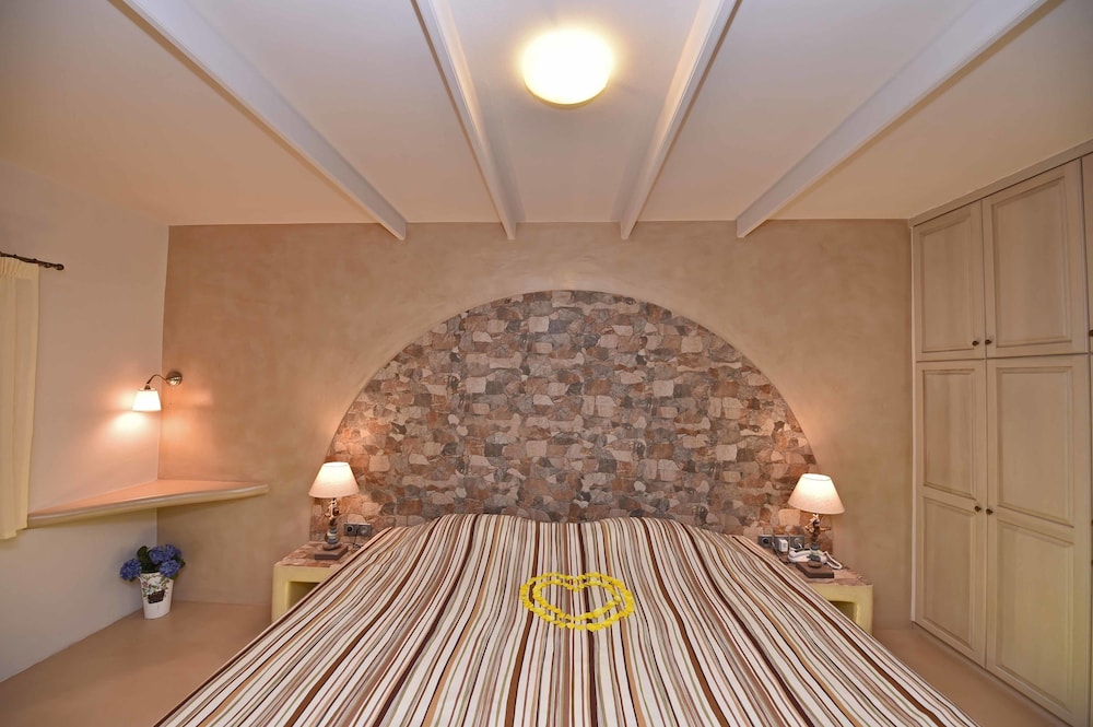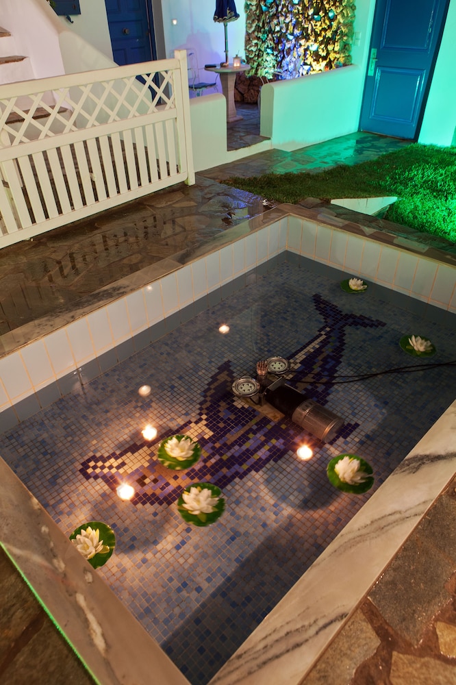 From the very beginning, the hosts were incredibly welcoming - nice drinks, red petals arranged on the very comfortable bed... As the stay progressed - over about 10 days - we got more and more useful tips and advice for exploring the superb island of Tinos including the best restaurants in the Chora, all gorgeous and within walking distance. The area was quiet, the room elegant and the pool in the interior yard -- cute.