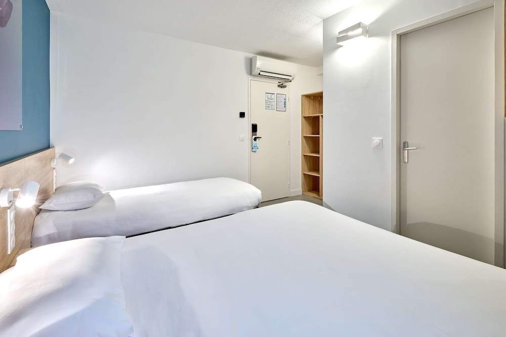 Chambre petite ,personnel réception très aimable et souriant , hotel équivalent F1,petit déjeuner cher 9,90 (comparé Ibis budget Strasbourg 7,5 avec beaucoup plus de choix et de choses ),beaucoup de choses manquantes ou données au compte goutte. Dommage.