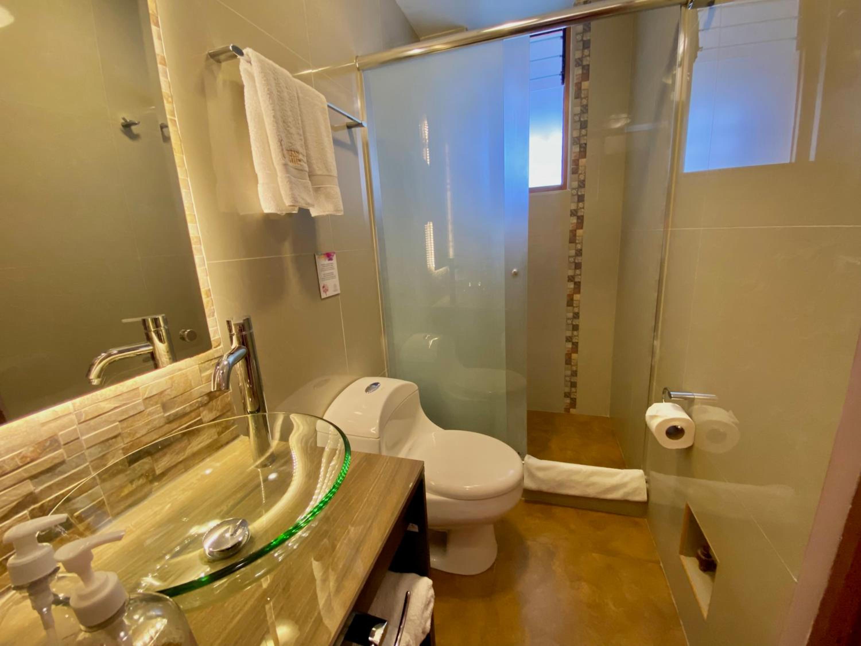 Each room at Mistico San Blas Boutique Hotel is thoughtfully equipped with modern amenities including a flat-screen TV, safety-deposit box, and heating. Guests can also enjoy complimentary toiletries and cozy bed linens.