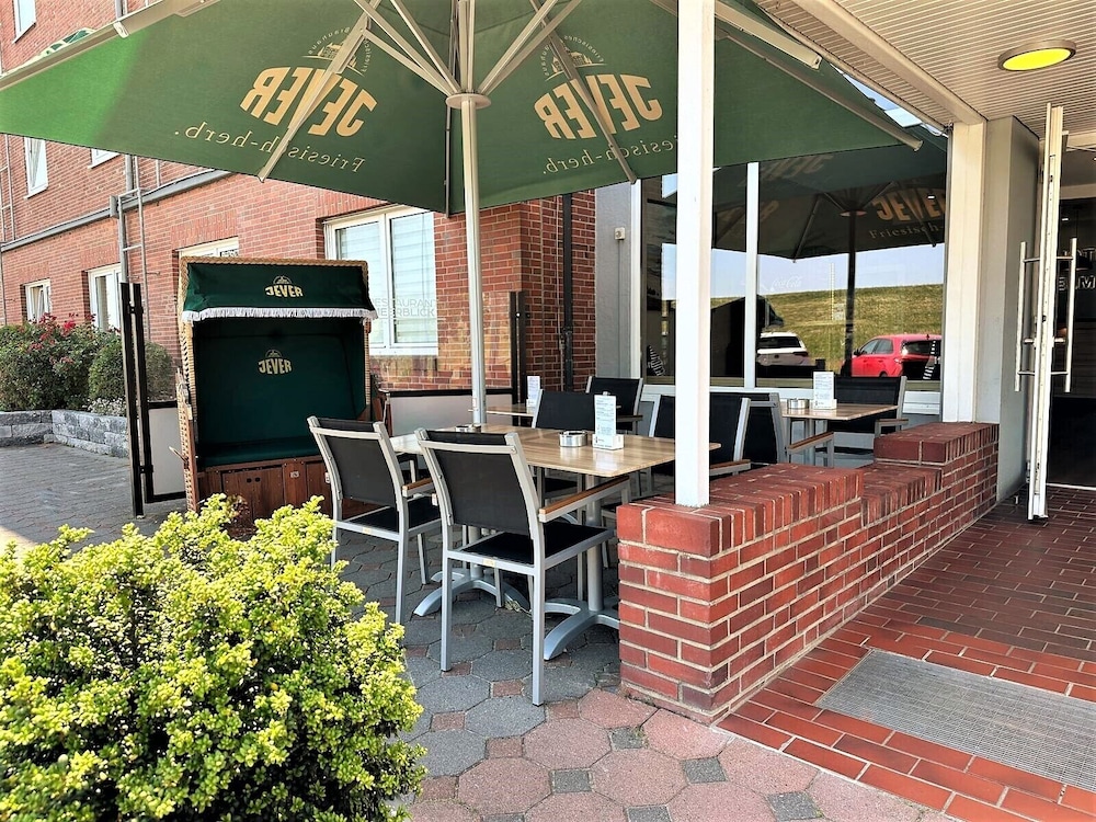 Das Nordseehotel macht seinem Namen alle Ehre liegt es doch in Spuckweite zur Namensgeberin, die genau hinter dem Deich vor sich hin rauscht- viel Wind und Wetter inbegriffen. Deshalb fährt man doch dahin!